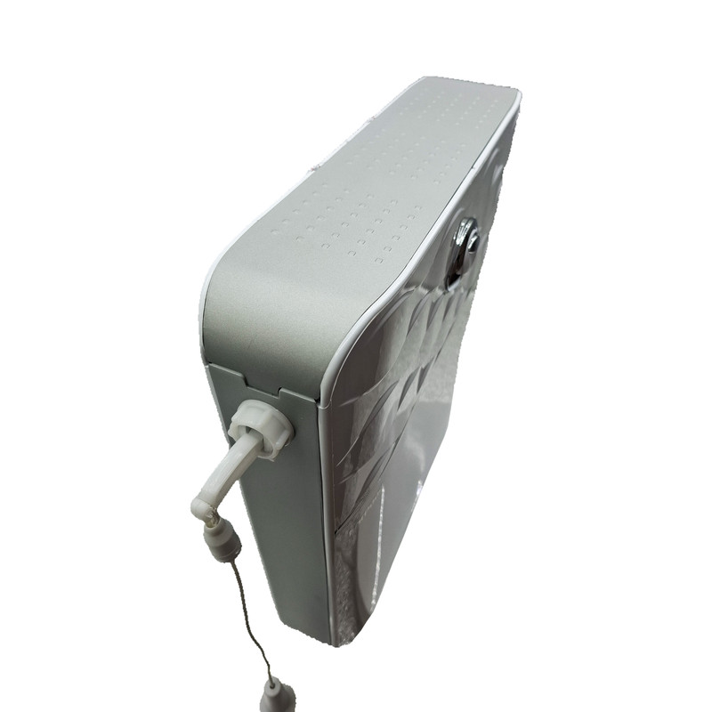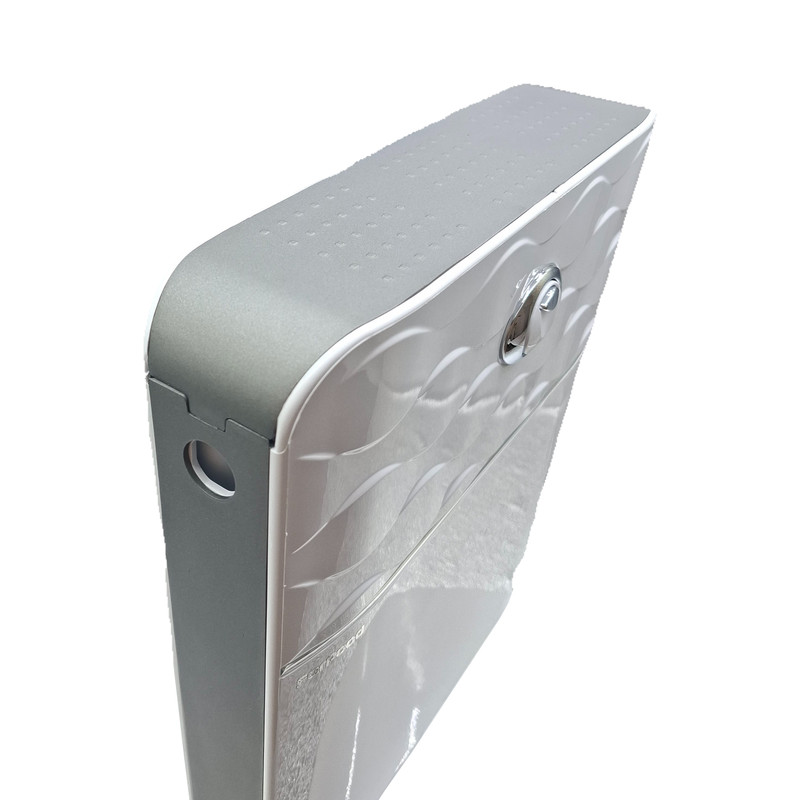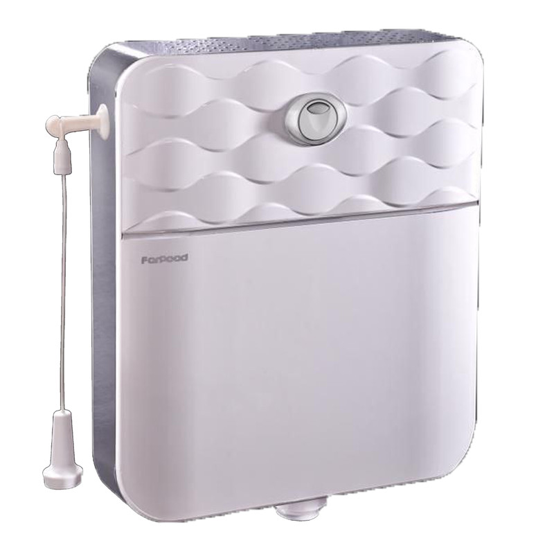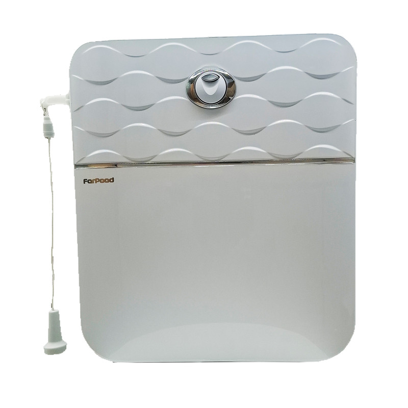 فلاش تانک روکار برند فرپود F097 فلاش تانک روکار سفید با درب و زه سیلور(کروم مات) فلاش تانک دیواری مدل با ظرافت و شیک و کاربردی و بادوام بودن، زیبایی دکوراسیون منزل شما را به ارمغان دارد. ویژگیهای این محصول به شرح ذیل می باشد: فلاش تانک تولید است و کیفیت آن صادراتی می باشد. ابعاد این محصول به طول: 360 میلیمتر و عرض: 64 میلیمتر و ارتفاع: 403 میلیمتر می باشد. حجم مخزن قابل تنظیم از 4 تا 8 لیتر می باشد. جنس مخزن پلیمر ABS می باشد. فلاش تانک دارای تخلیه دو حالته با استفاده از اهرم و دکمه جهت صرفه جویی در آب می باشد. این محصول مجهز به سیستم دیافراگم در طراحی فلوتر است. محل نصب در دستشویی و سرویس بهداشتی منازل و برج های مسکونی و بیماان ها و مراکز خرید می باشد. ویژگی خاص این محصول کم صدا بودن عملکرد فلاش تانک در تمامی حالت ها هست.