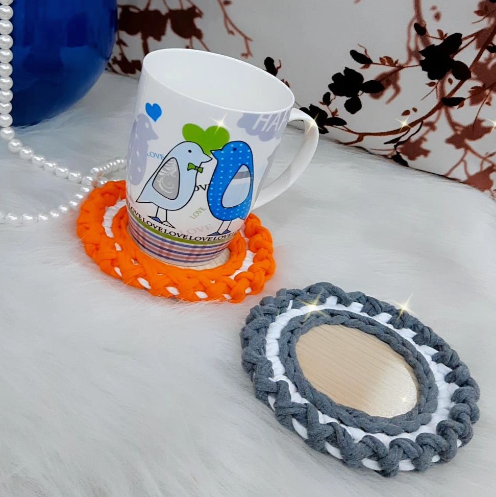زیرلیوانی تریکو قابل سفارش در رنگ دلخواه کاربردی و شیک محصول ترکیب چوب و بافت گرد قطر ۱۰ سانت قیمت برای هر عدد میباشد