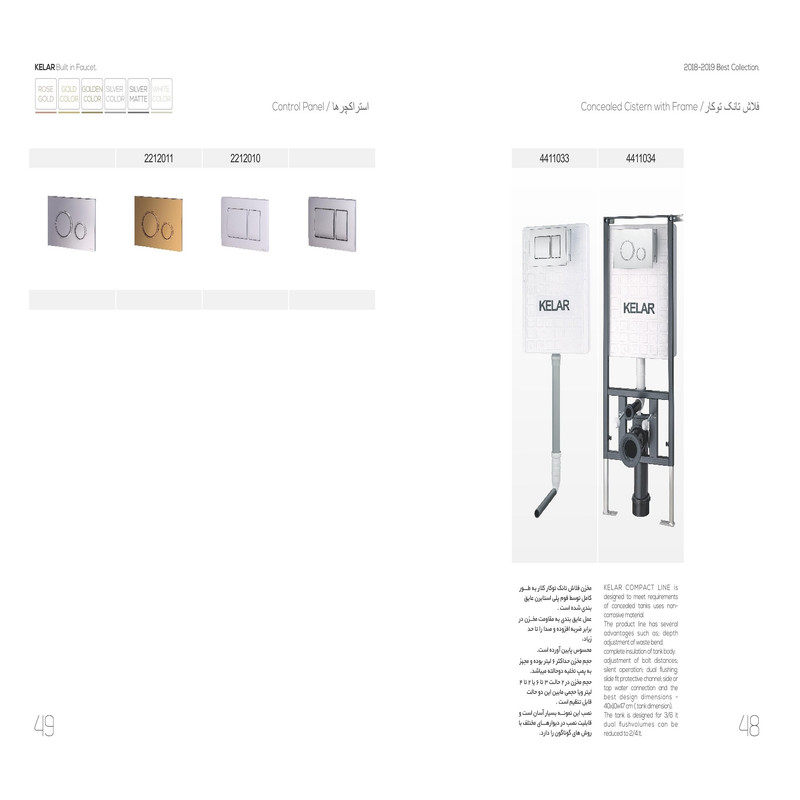 اگر شما نیز خانه ای مدرن دارید و یا به سمت مدرن شدن منزل تان میروید فلاش تانک های کلار مدل توکار به همین منظور طراحی و تولید میشوند، خصوصا اگر فضای کمی دارید و امکان استفاده از فلاش تانک های قدیمی را ندارید. استراکچر این مدل فلاش تانک ها داخل دیوار نصب میشوند، بصورت مخفی هستند و فقط پنل کلید تخلیه به نمایش در میآیند. شرکت کلار به عنوان تولیدکننده محصولات با کیفیت این استراکچر های را به همین منظور در اختیار شما قرار میدهد. مخزن فلاش تانک توکار کلار به طور کامل توسط پلی استایرن عایق بندی شده یعنی این عمل عایق بندی به مقاومت مخزن در برابر ضربه افزوده و صدای تخلیه را تا حد زیادی از بین میبرد. نصب آن بسیار آسان است و قابلیت نصب در هر گونه دیوار را دارد.