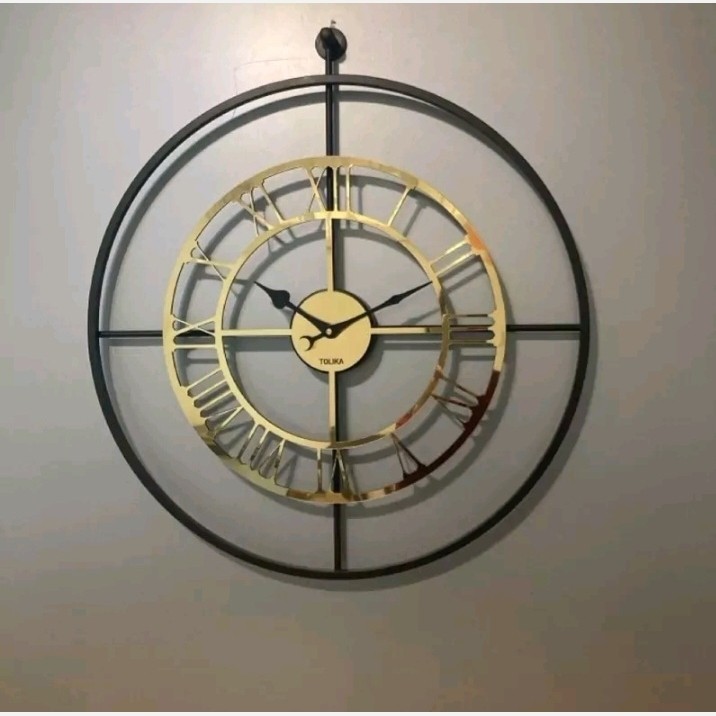 ساعت دیواری فلزی به رنگ مشکی مات به قطر 60 سانت همراه با موتور آرامگرد مبلمونسرا مدل 236859