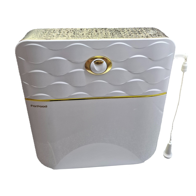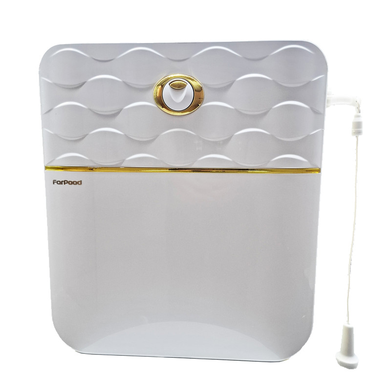 فلاش تانک روکار مدل فرپود F029 شاپ فلاش تانک دیواری مدل با ظرافت و شیک و کاربردی و بادوام بودن، زیبایی دکوراسیون منزل شما را به ارمغان دارد. ویژگیهای این محصول به شرح ذیل می باشد: فلاش تانک تولید است و کیفیت آن صادراتی می باشد. ابعاد این محصول به طول: 360 میلیمتر و عرض: 64 میلیمتر و ارتفاع: 403 میلیمتر می باشد. حجم مخزن قابل تنظیم از 4 تا 8 لیتر می باشد. جنس مخزن پلیمر ABS می باشد. فلاش تانک دارای تخلیه دو حالته با استفاده از اهرم و دکمه جهت صرفه جویی در آب می باشد. این محصول مجهز به سیستم دیافراگم در طراحی فلوتر است. محل نصب در دستشویی و سرویس بهداشتی منازل و برج های مسکونی و بیماان ها و مراکز خرید می باشد. ویژگی خاص این محصول کم صدا بودن عملکرد فلاش تانک در تمامی حالت ها هست.
