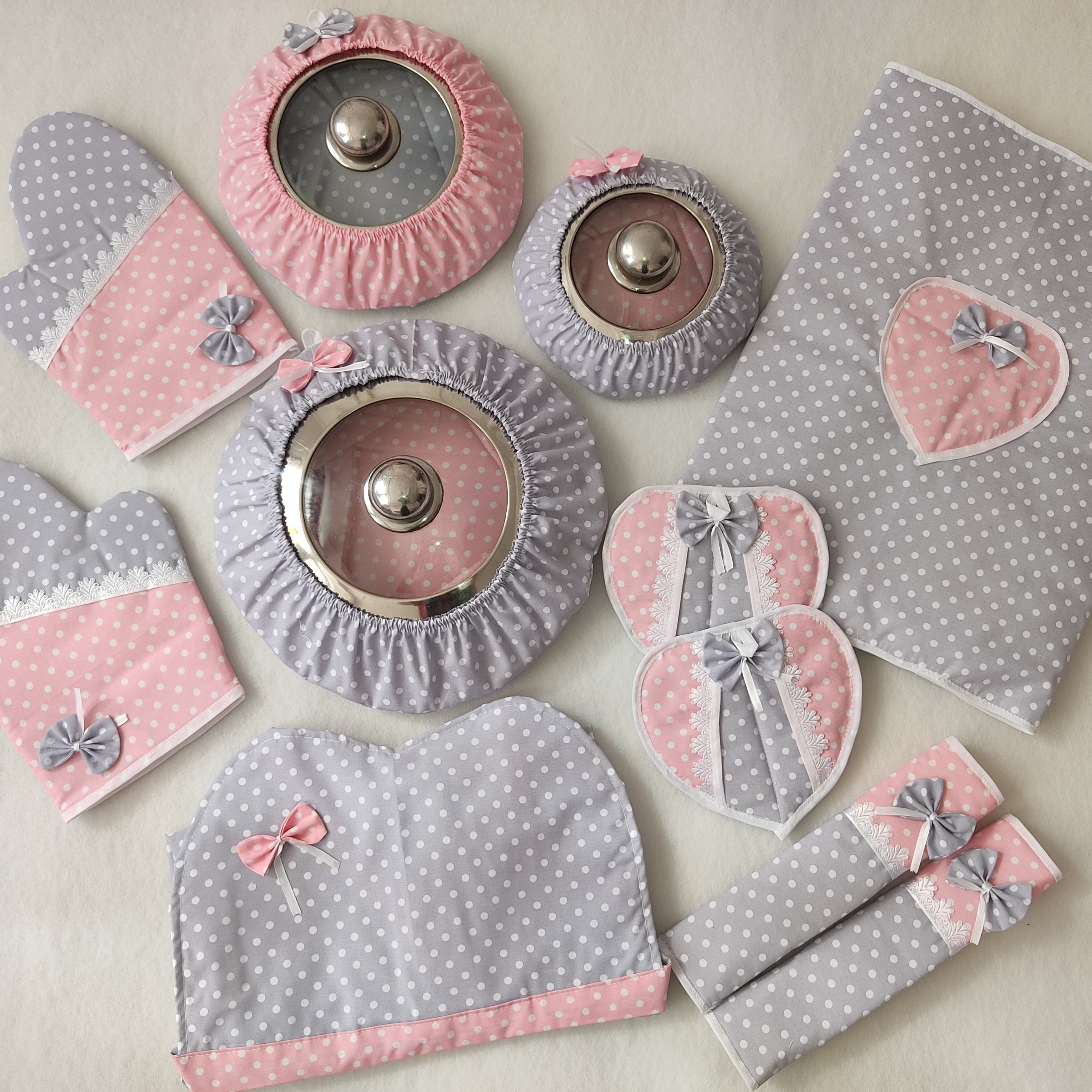 سرویس اشپزخانه 11 پارچه با بهترین کیفیت و ضمانت. جنس پارچه نسوز شامل یک عدد نمگیر یک عدد پیشبند دو عدد دستگیره یخچال دو عدد دستکش فر دو عدد دستگیره قلبی قابلمه سه عدد دمکش پارچه توپ توپی دیگه شارژ نمیشه