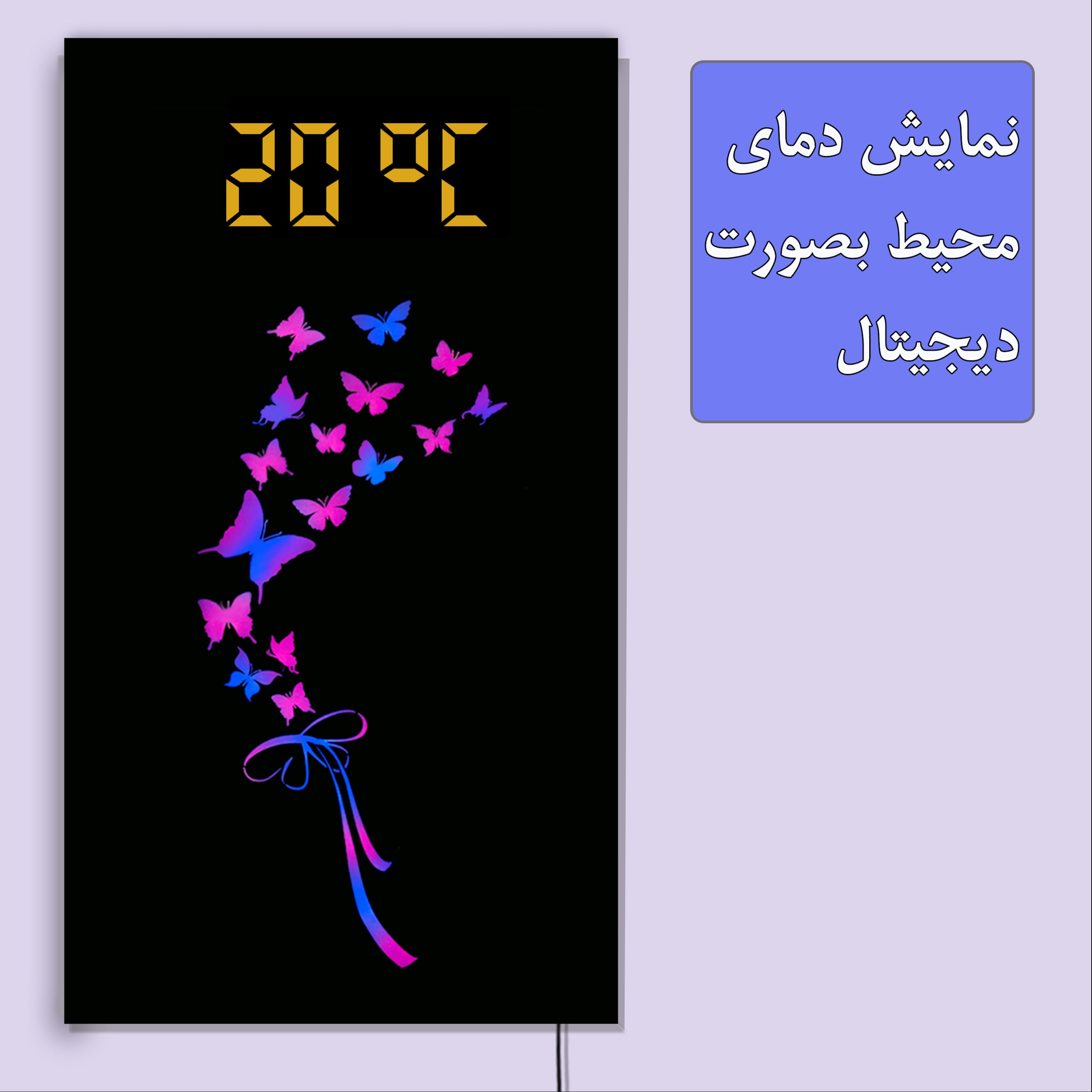 دارای گواهی ثبت از اداره ثبت اختراعات کشور به شماره 24857 به دلیل تولید انحصاری، سعی شده از با کیفیت ترین قطعات در ساخت این ساعت استفاده شود. ساعت به صورت پیش فرض بدون قابلیت نمایش دما می باشد، جهت افزودن این قابلیت با فروشگاه هماهنگ نمایید. بهترین هدیه برای مناسبت های خاص و ... -------- ساعت های دیجیتال به دلیل بیصدا بودن و زیبایی خاص، با ورود به بازار و منازل، بهترین جایگزین ساعت های عقربه ای محسوب می شوند. این ساعت لوکس و دکوراتیو دیجیتال که جزو زیباترین ساعت های موجود در کشور می باشد، نمایی زیبا به دکوراسیون منزل می بخشد. نمای تمام شیشه دودی، باریک و زیبای جلوی ساعت، همراه با طرح های گرافیکی و تلفیق نورهای آرامش بخش و همچنین وجود افکت های نوری، جذابیت و زیبایی خاص و منحصر به فردی به ساعت بخشیده است. نمایش تاریخ شمسی از قابلیت و کارایی دیگر این کالا می باشد که آن را از سایر ساعت ها متمایز کرده است که علاوه بر ساعت، تاریخ شمار هم برای منزل محسوب می شود. ویژگی ها و قابلیت ها: 1) بدون صدا. 2) شاسی و بدنه چوبی بسیار مستحکم، مقاوم در برابر ضربه . 3) نمای جلو تمام شیشه با لایه تمام پوششی ضد خش. 4) دارای عایق داخلی جهت مقاومت در برابر رطوبت . 5) دارای منافذ تهویه هوا جهت مقاومت در برابر حرارت و گرمای محیط. 6) دارای کاهنده ولتاژ داخلی جهت صرفه جویی در مصرف برق . 7) دارای فیلتر تثبیت ولتاژ در ورودی، جهت مقاومت در برابر نوسانات برق. 8) درای فیلتر ضد نویز، جهت مقاومت در برابر نویز های الکتریکی و الکترومغناطیسی. 9) دارای باتری Backup، جهت نگهداری تنظیمات در زمان قطع برق. 10 ) برای اولین بار، بهره گیری از تکنیک انعکاس نور در قسمت 7Segment جهت روشنایی ایده آل با مصرف برق پایین. 11) دارای قابلیت Sleep برای قسمت نمایش طرح و قسمت نمایش 7Segment بصورت مستقل. 12) دارای تاریخ شمار هوشمند . 13) قابل استفاده بعنوان چراغ خواب و تابلو. امکان ساخت ساعت با طرح سفارشی، درج برند، لوگو و متن وجود دارد. آدرس سایت فروشگاه: www.digitaldecor.ir