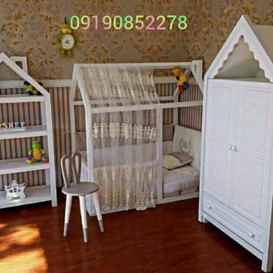 سرویس شامل تخت مدل کلبه کمد و ویترین مدل کلبه