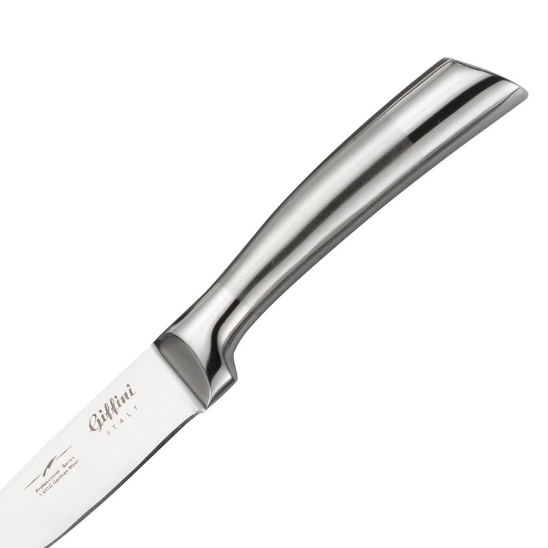 چاقوی آشپزخانه از بهترین و معتبر ترین برندهای جهان میباشد که تمام مراحل طراحی ان در شرکت GIFFINI ایتالیا انجام میشود و برای تولید ان از بهترین و با کیفیت ترین الیاژ جهان استفاده شده که در کار کردن با این چاقو شما ان را کاملا حس کرده و لذت آشپزی را برای شما چند برابر خواهد کرد و بل طراحی دسته و بدنه یک تکه این چاقو هرگز دسته ان جدا نخواهد شد و شما را سالیان سال از خرید مجددا ان بی نیاز خواهد کرد.