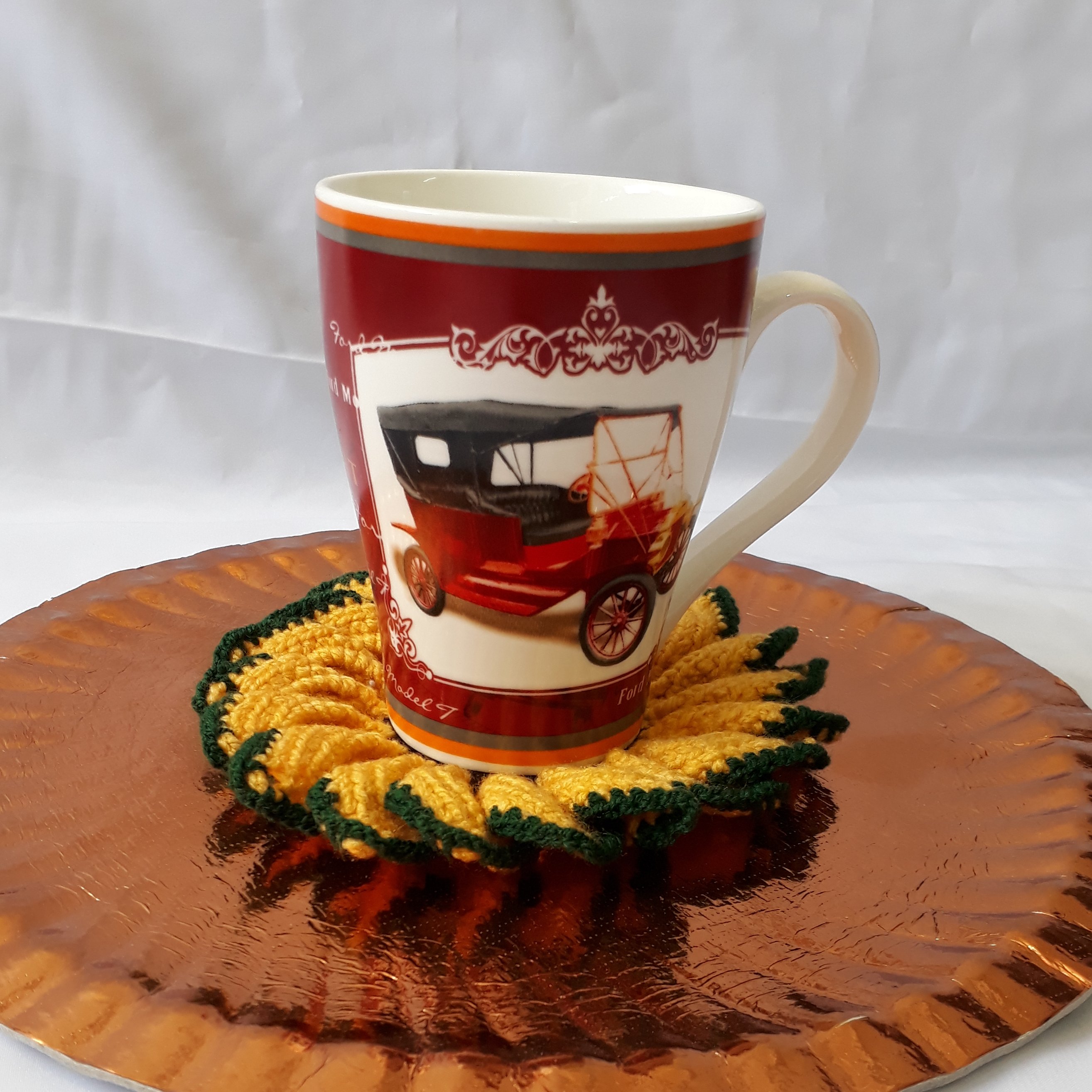 زیرلیوانی طرح آفتابگردان شیک و زیبا ترکیبی عالی برای دیزاین سفره پذیرایی کادویی عالی برای هدیه😍😍