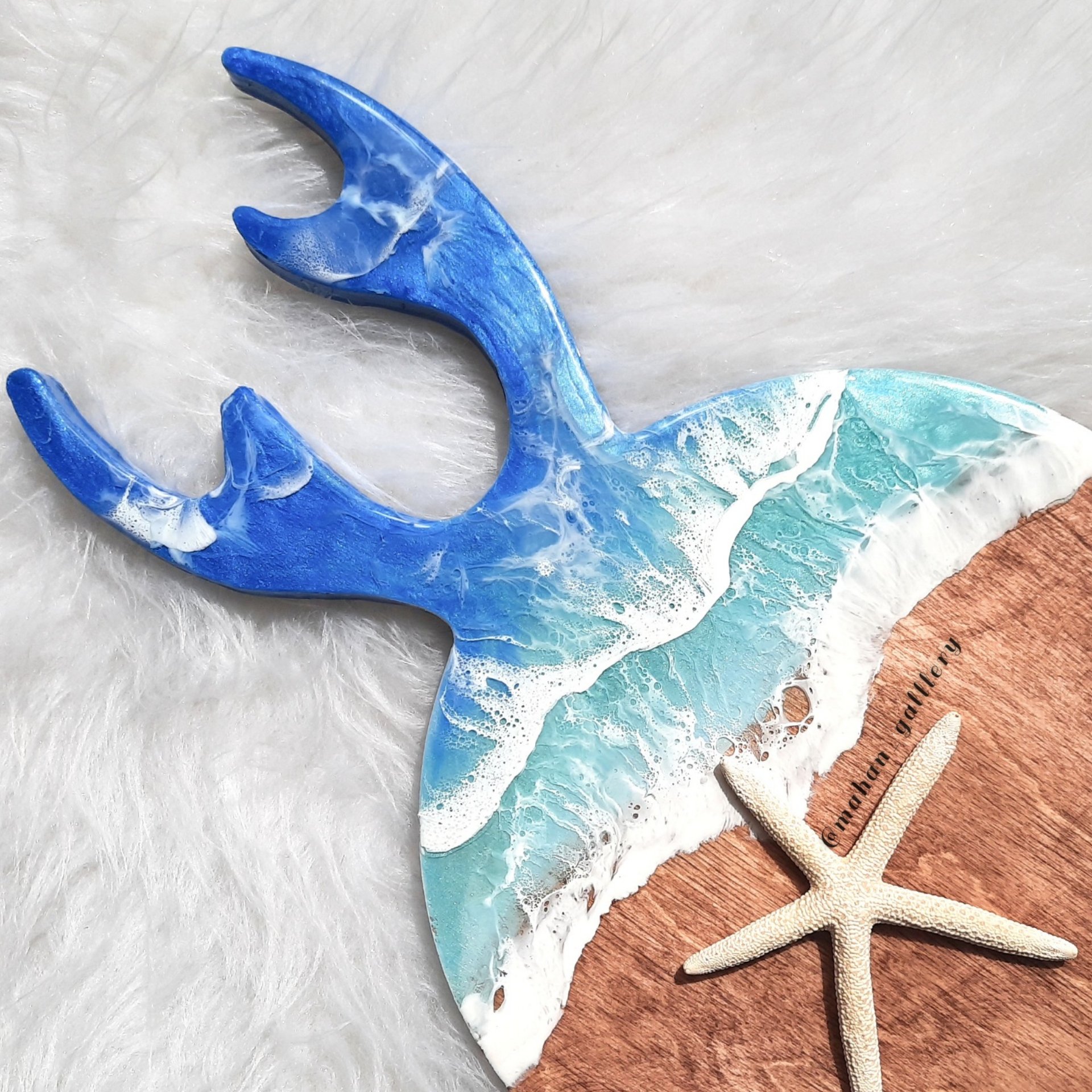 تخته سرو چوبی طرح شاخ گوزنی گرد کار شده با رزین اپوکسی یک کار بسیار زیبا که جلوه خاص و زیبای به میز شما در مهمانی و دورهمی ها میدهد .