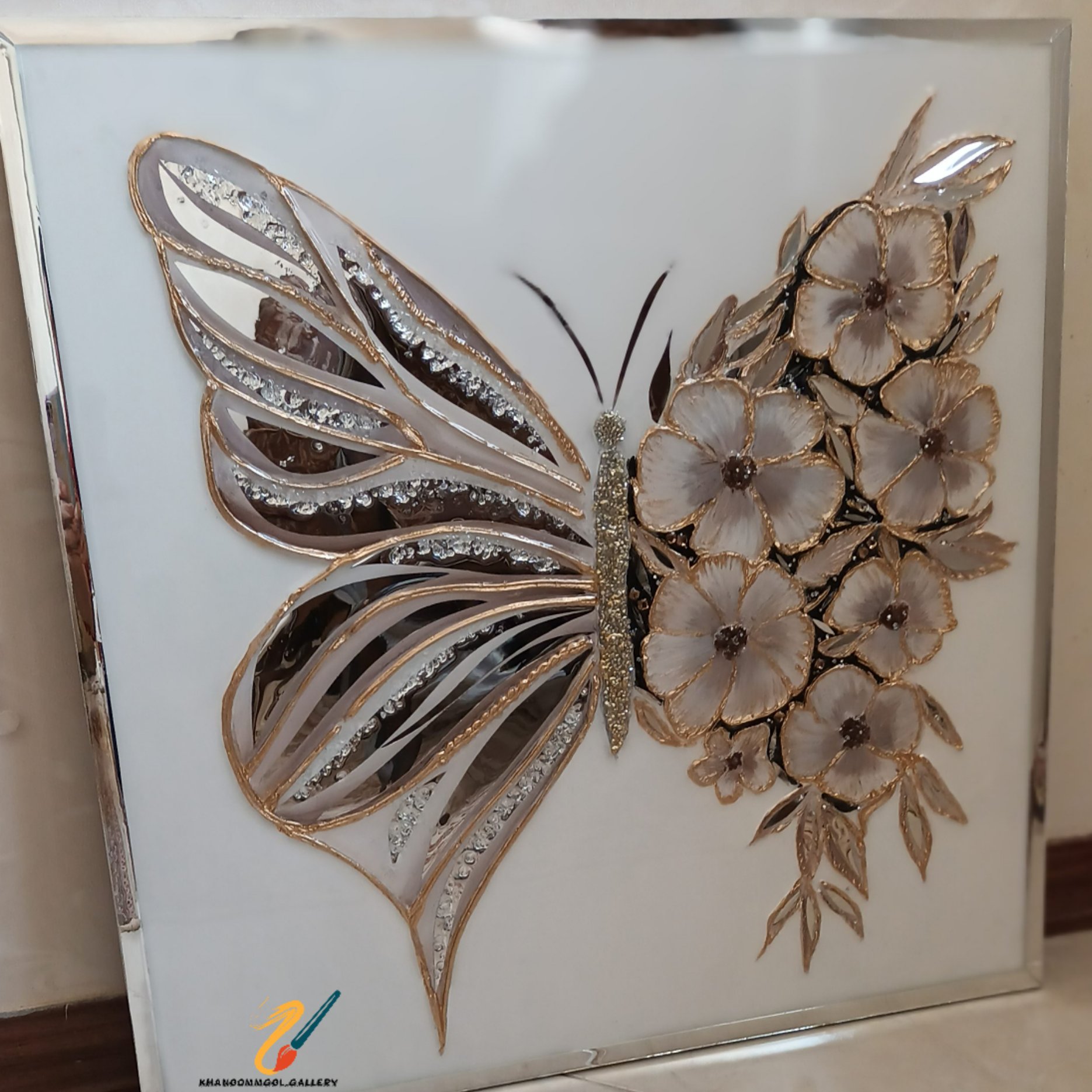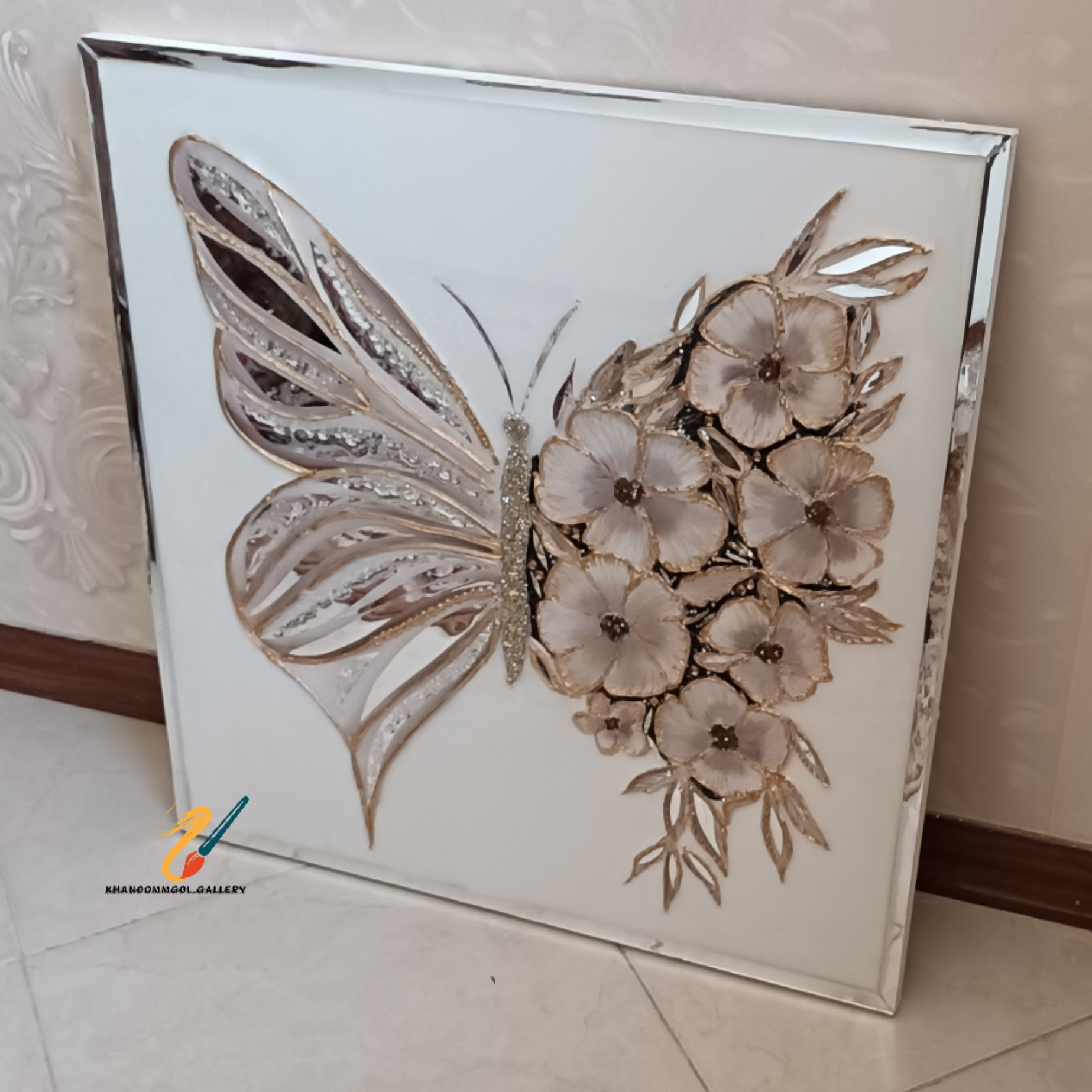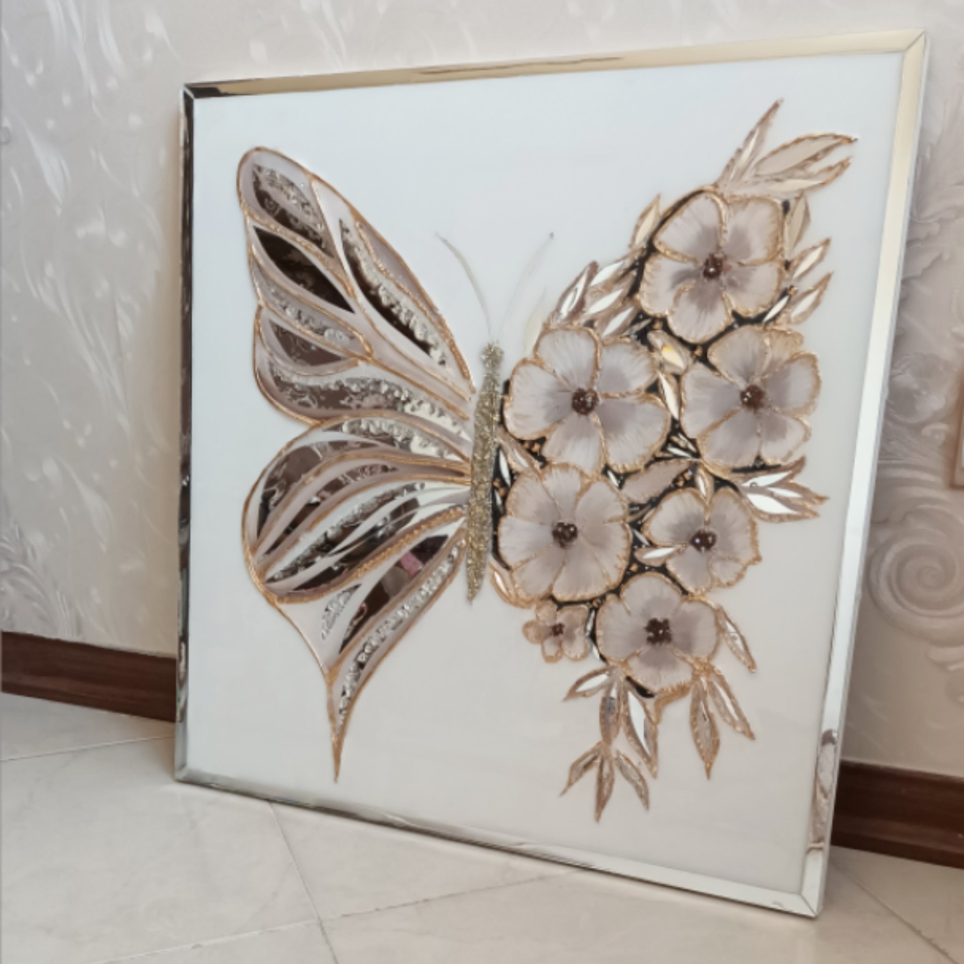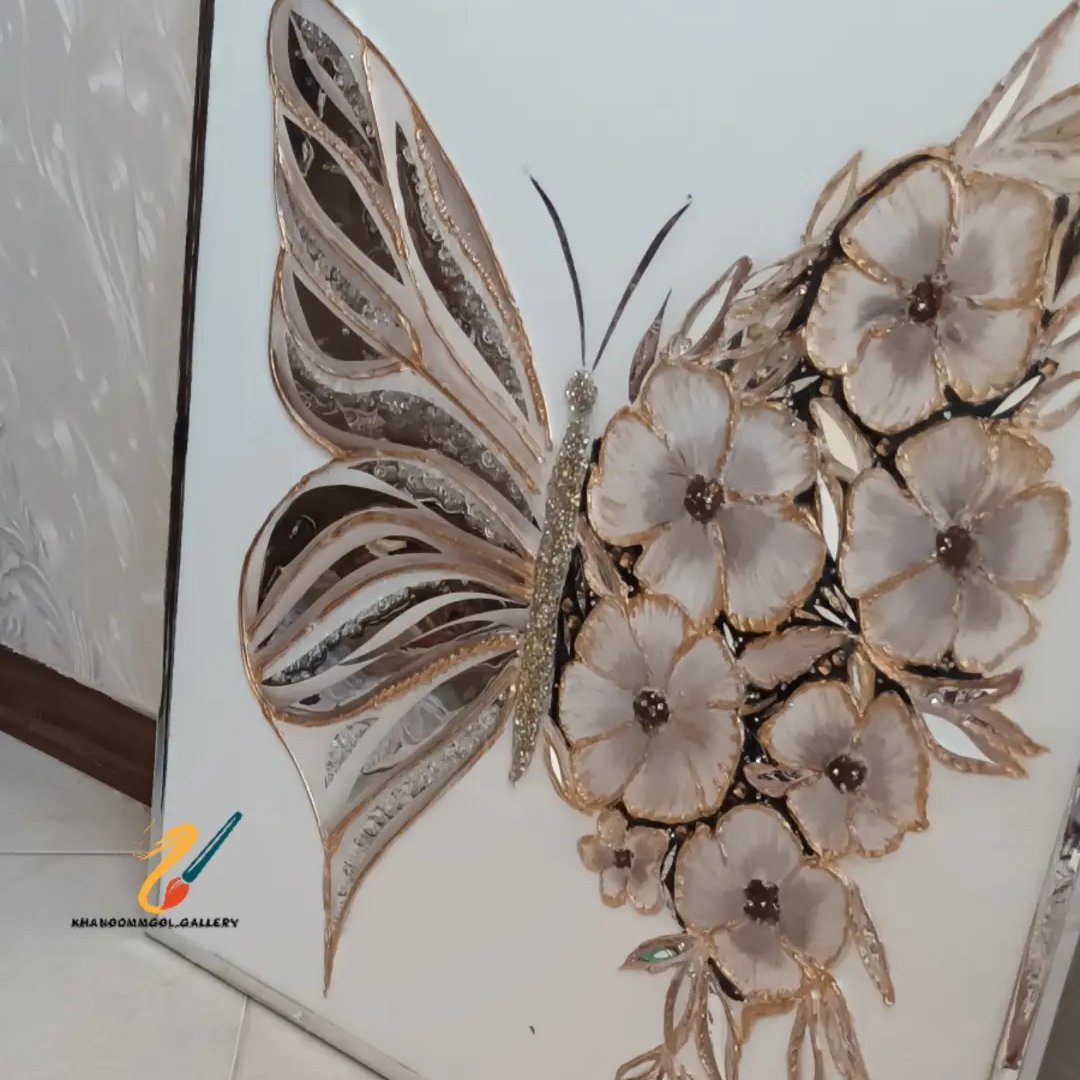 تابلو پروانه با آینه رزین مبلمونسرا مدل 267899