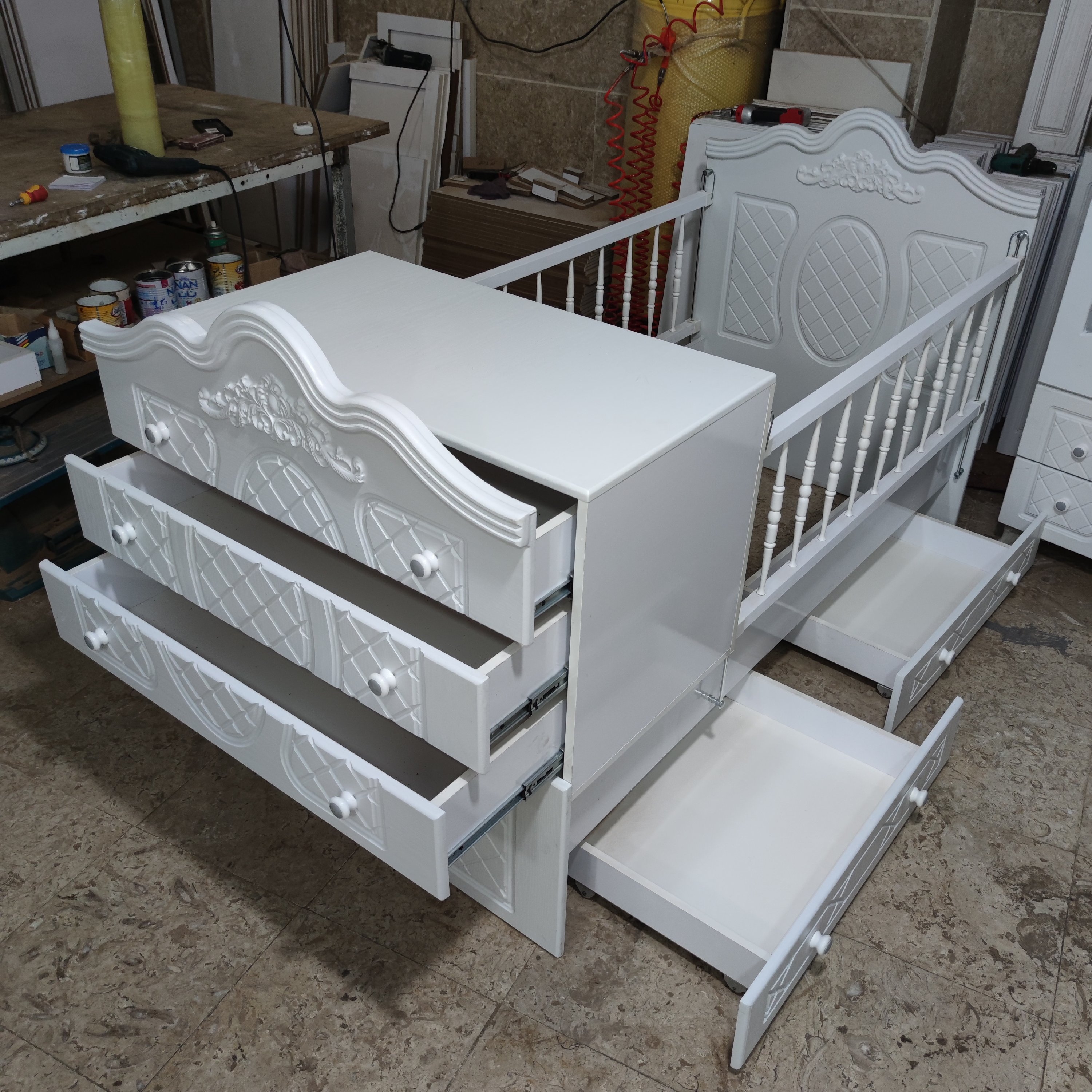 مدل زیبای پاریس 🗼 تولید کننده حدود ۵۰ ، ۶۰ مدل سرویس خواب نوزاد و نوجوان در طرح ها و رنگ های متنوع 😍 دلیل پایین بودن قیمت هامون اینه که ما تولید کننده هستیم و یراق و ام دی اف مورد نیازمون رو تماما به صورت عمده و مستقیم از کارخونه خریداری میکنیم تا قیمت تمام شده به حداقل برسه