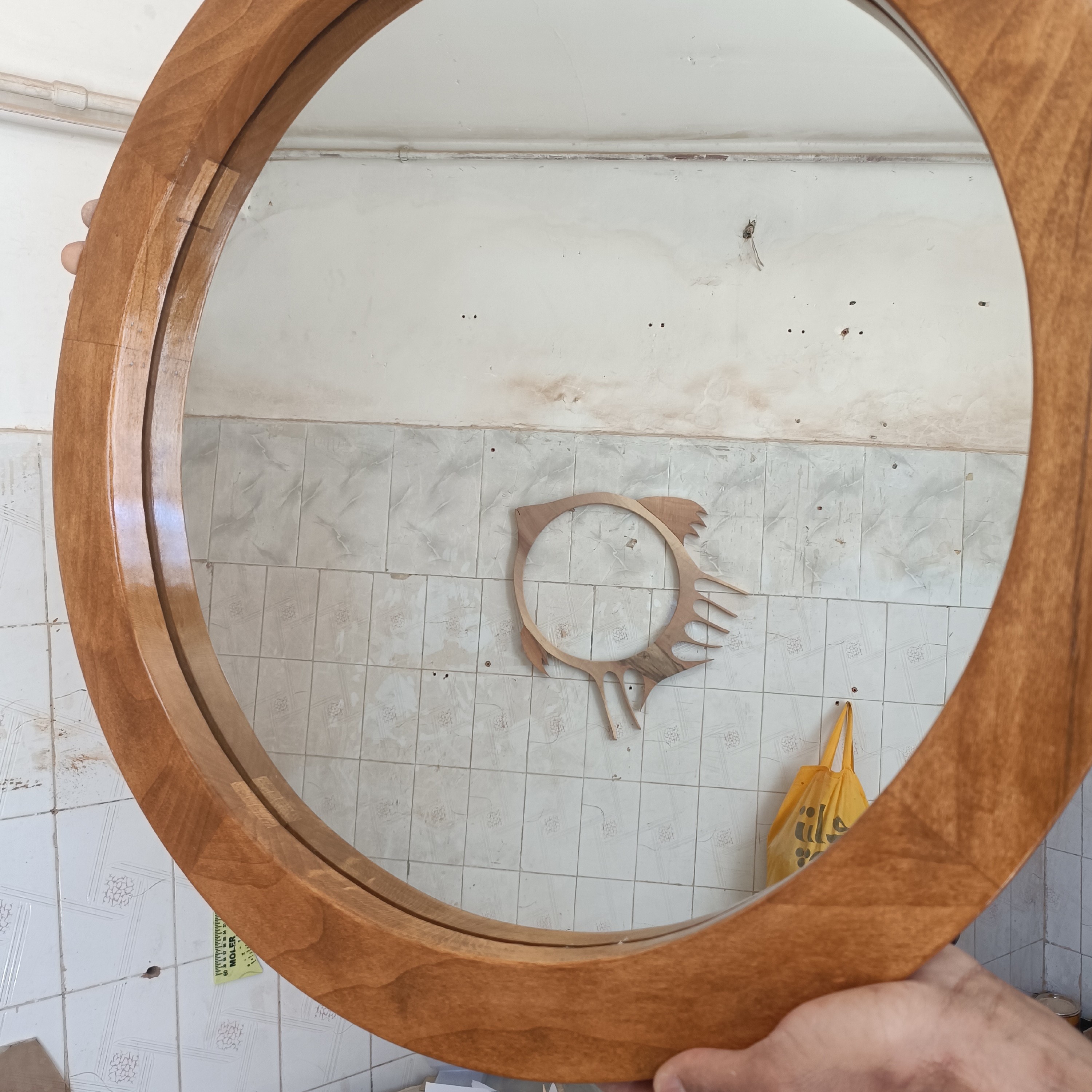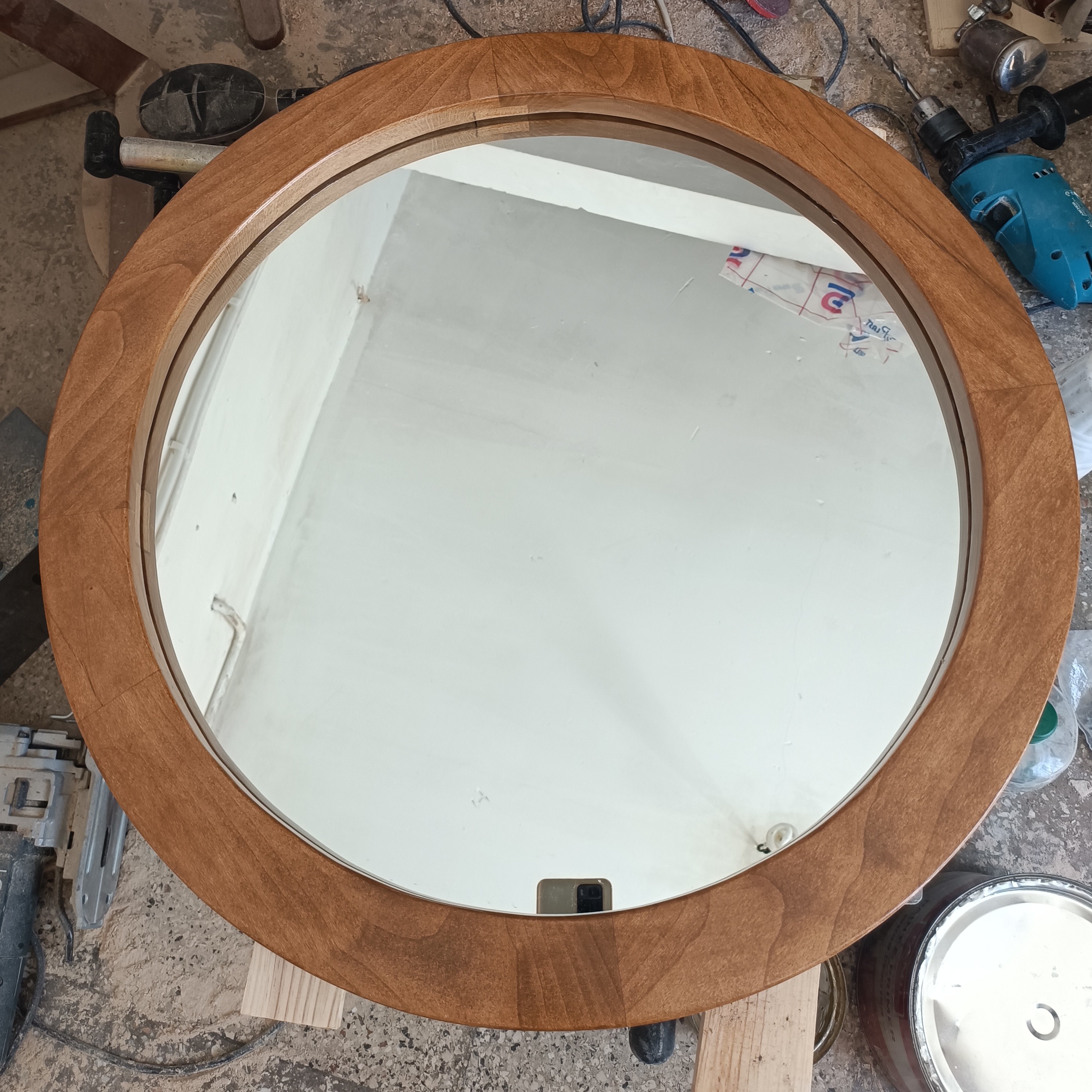 آیینه چوبی قطر40.50 و عرض کار 4.5 تا 5 و عمق 2.5 تا 3.5ساخته شده از چوب طبیعی.ضد آب. انواع قطر های دیگر هم به سفارش مشتری ساخته میشود رنگ محصول هم قابل سفارش و در صورت صدمه دیدن محصول در ارسال مسولیت به عهده ما هست