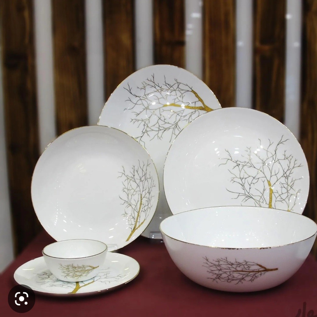 🔆سرویس ارکوپال ۳۶ پارچه با قالب ارکوپال مقصود برند اورنج اوپال با طرح درخت طلا و قالب گردو لبه های طلایی 🔆۶ پلوخوری، ۶خورشتخوری، ۶میوهخوری، ۶کاسه ماست،۶ کاسه آبگوشت ۲ عدد سس خوری ،۲ عدد نمکپاش ۱عدد دیس، ۱عدد کاسهی بزرگ ❌️❌️