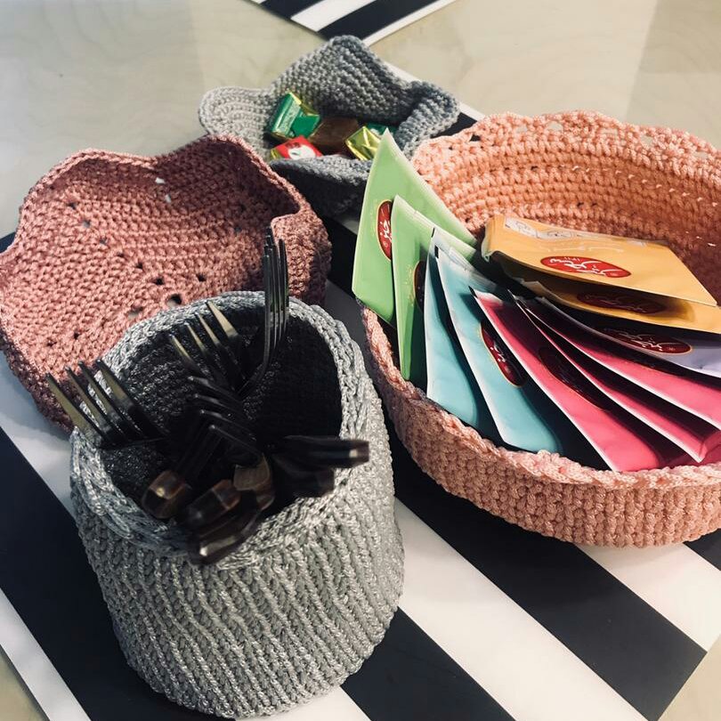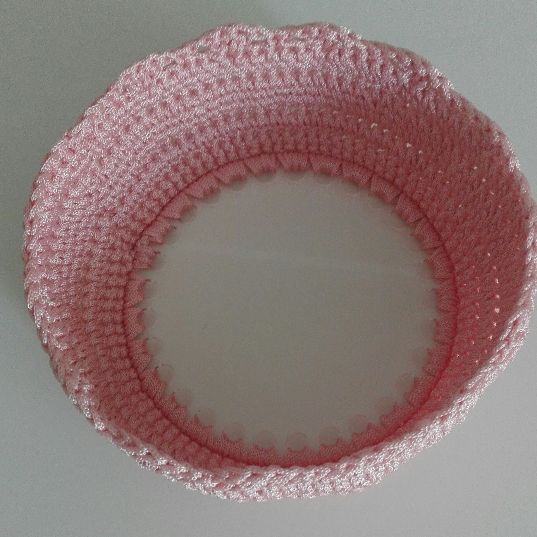 سبد مکرومه بافی با استند شیشهای محکم به قطر ۱۵ و ارتفاع ۸ رنگ صورتی مناسب میز آرایش و پذیرایی سفارش انواع محصول در اشکال هندسی و سایز و رنگ و طرح به سلیقه شما پذیرفته میشود