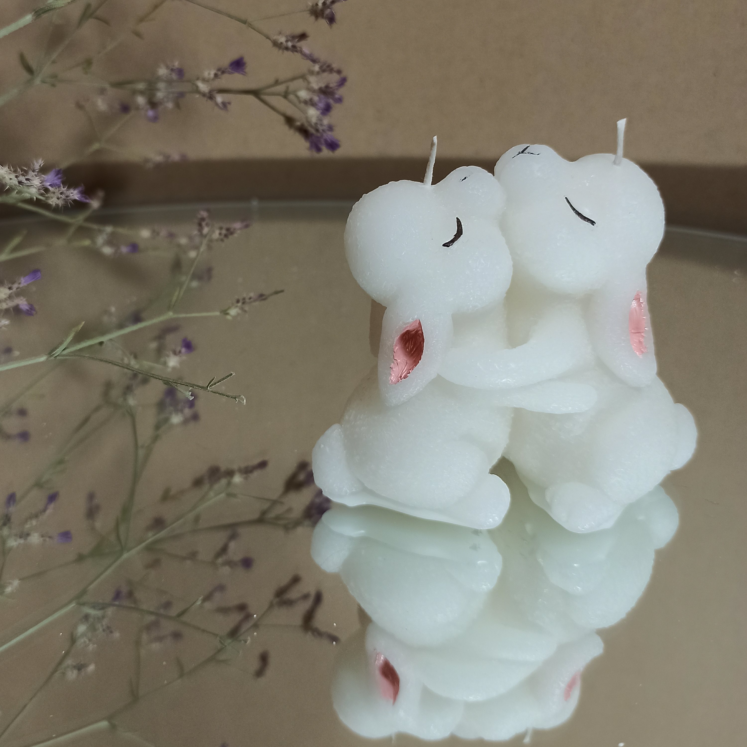 شمع خرگوش مدل خرگوش های عاشق تهیه شده از پارافین درجه یک مناسب برای هدیه دادن در مناسبات مختلف