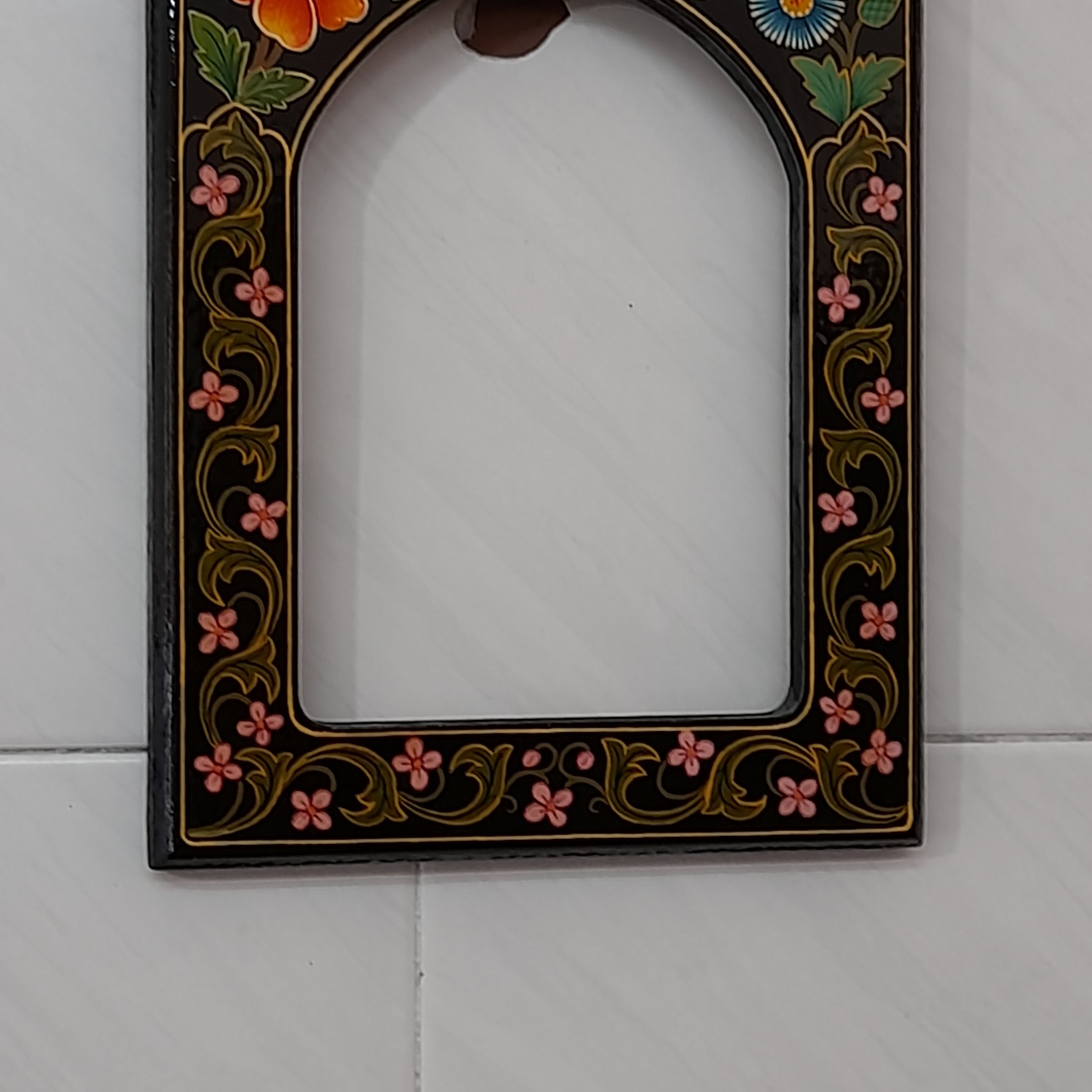 آینه چوبی دست ساز ونقاشی شده کار دست با رنگهای طبیعی با طرح گل ومرغ سبک قاجاریه قابل تمیز کردن با دستمال مرطوب
