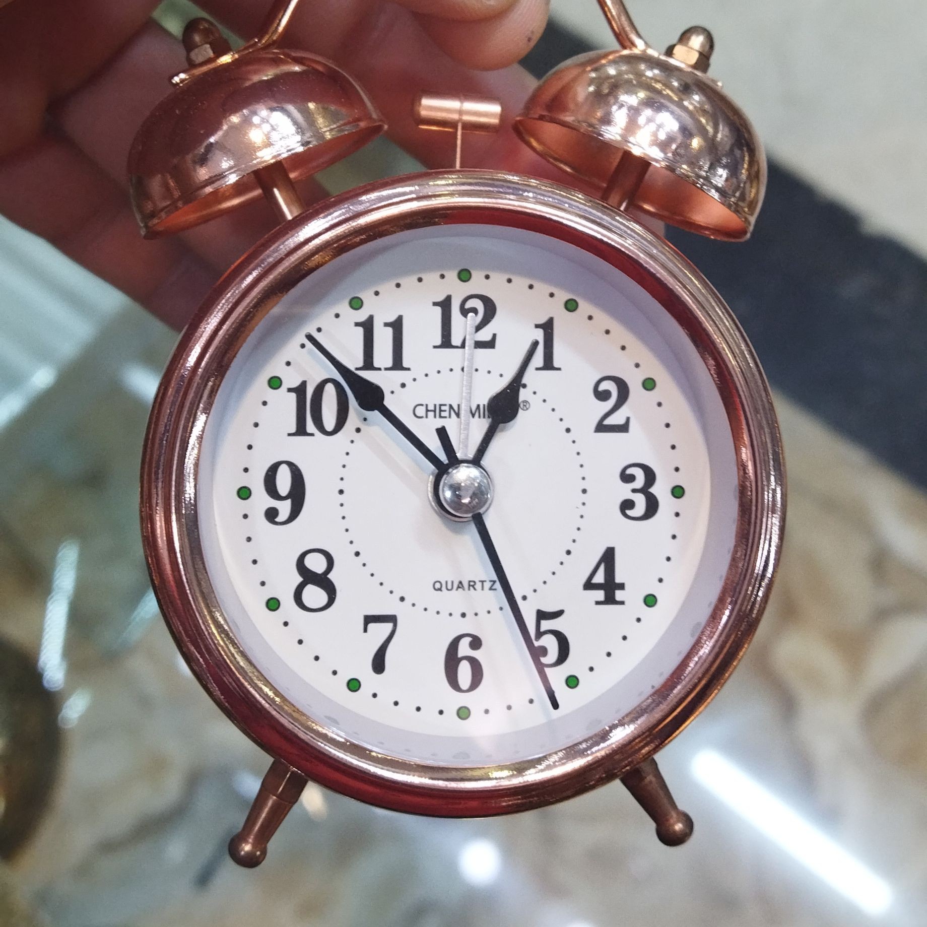 ساعت رو میزی زنگدار ، مدل فلزی ، کار با باطری قلمی ، قطر صفحه ۱۱ سانت ساعت رومیزی مناسب هفت سین ، رنگ مسی ساعت دارای چراغ دید در شب است ارسال رایگان صفحه سفید ، ساعت رومیزی دارای شب نما ، ساعت رو میزی رنگ مسی کاربردی و دکوری ، هفت سین دارای کارتن مخصوص بسته بندی