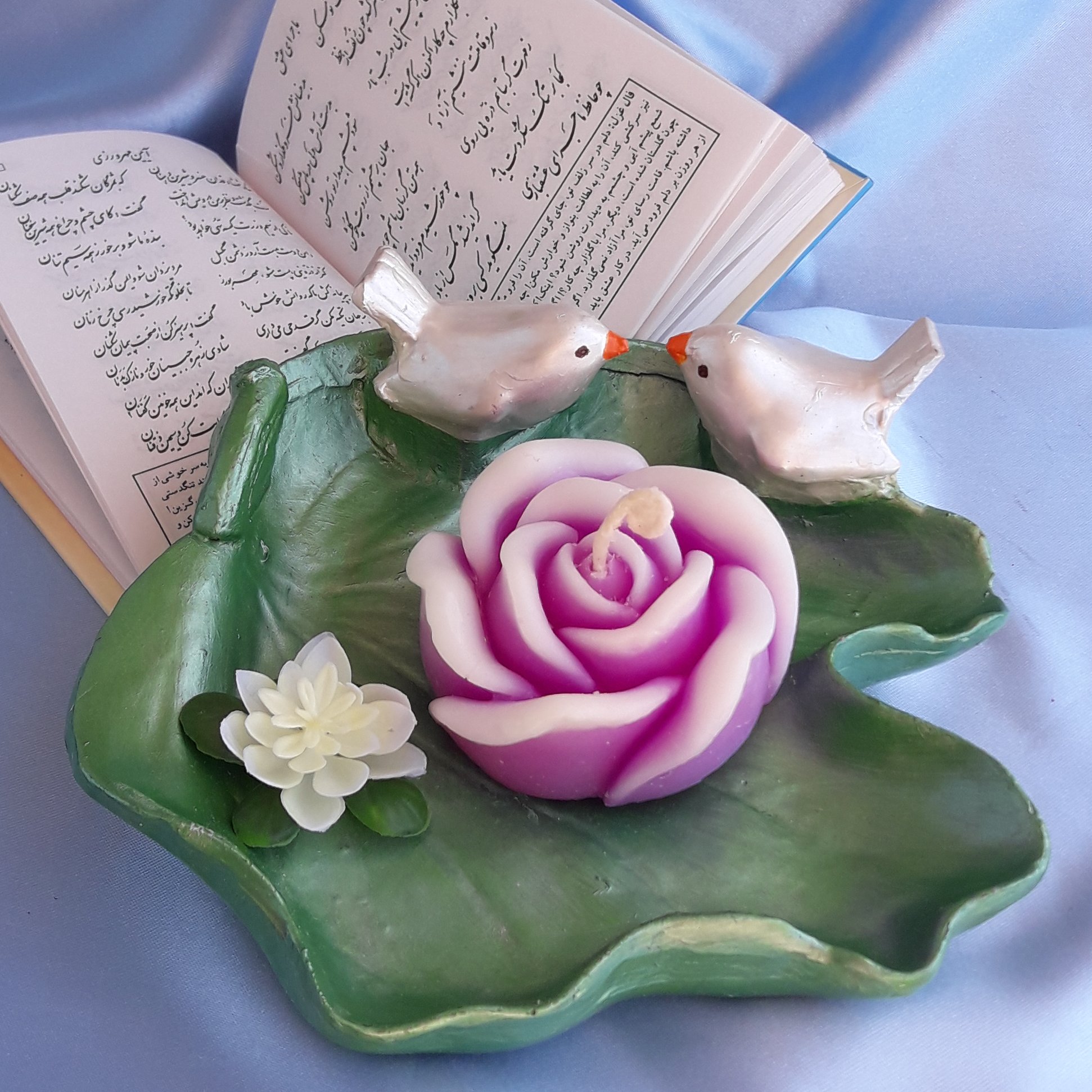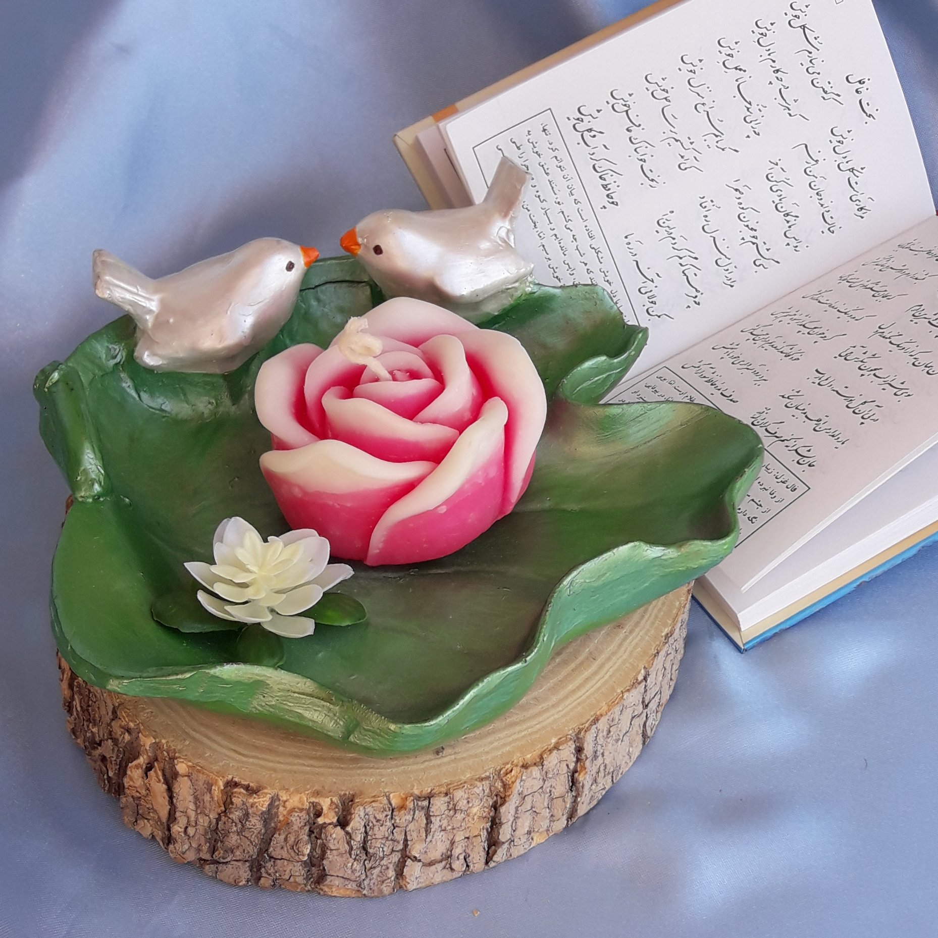دکوری برگ و دوکبوتر پلی استری باشمع گل رز - جاشمعی مبلمونسرا مدل 280468