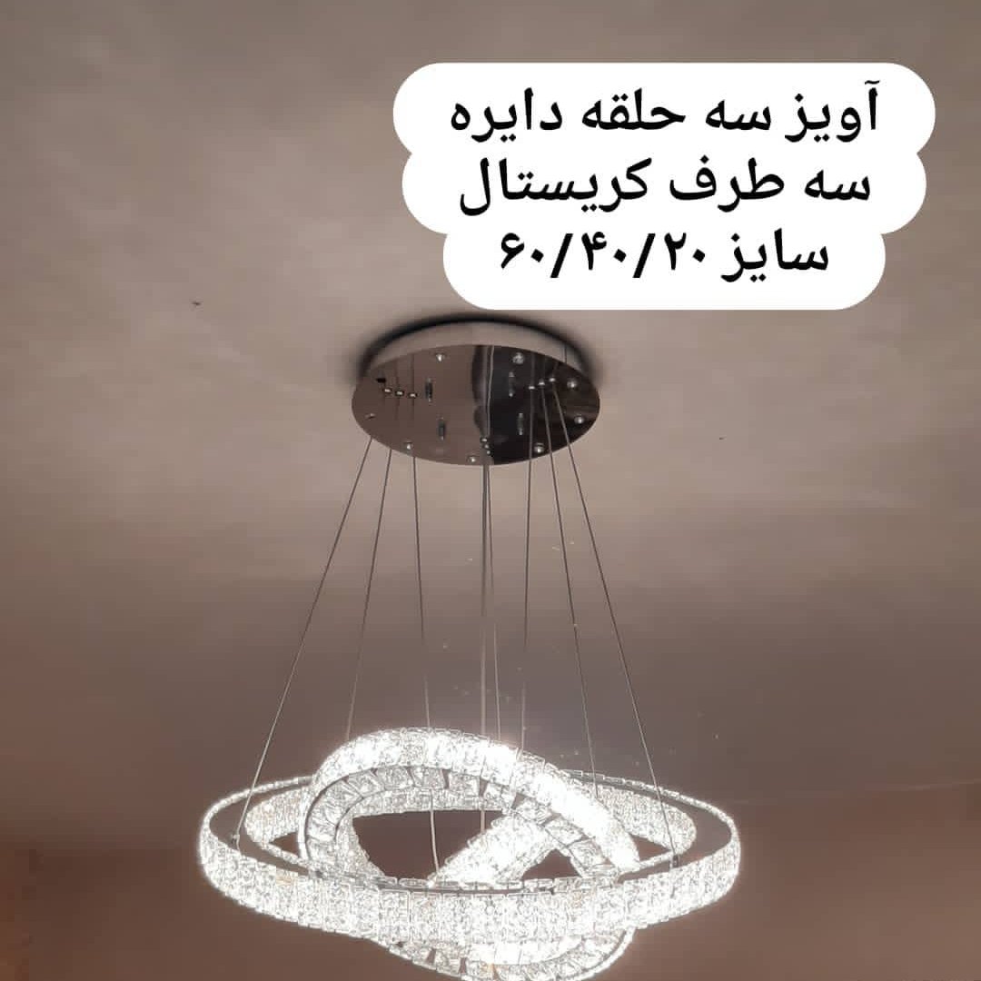 سایز حلقه ها به ترتیب 60_40_20 استیل 304 نقره ای استیل طلایی ده درصد گرونتر دارای ریموت کنترل تعویض نور به 3 حالت زرد مهتاب و ترکیبی لامپ های سکه ای و اس ام دی خطی استفاده شده حدود 7 تا 8 کیلو وزن داره کریستال ها درجه یک با ضمانت 5 سال استیل 10 سال این سایز فضایی بین 25 تا 35 مترمربع رو کاملا روشنایی میده سایز های بزرگتر تولید میکنیم نصب آسان مونتاژ شده و آماده نصب قابلیت تنظیم ارتفاع و چینش مدل ب دلخواه