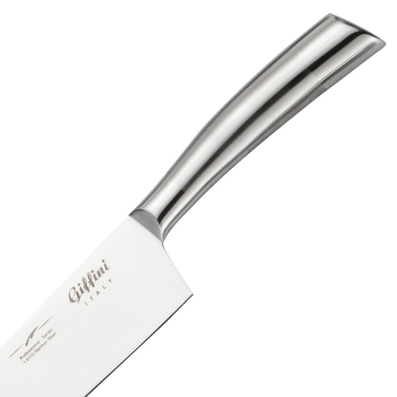 چاقوی آشپزخانه از بهترین و معتبر ترین برندهای جهان میباشد که تمام مراحل طراحی ان در شرکت GIFFINI ایتالیا انجام میشود و برای تولید ان از بهترین و با کیفیت ترین الیاژ جهان استفاده شده که در کار کردن با این چاقو شما ان را کاملا حس کرده و لذت آشپزی را برای شما چند برابر خواهد کرد و بل طراحی دسته و بدنه یک تکه این چاقو هرگز دسته ان جدا نخواهد شد و شما را سالیان سال از خرید مجددا ان بی نیاز خواهد کرد.