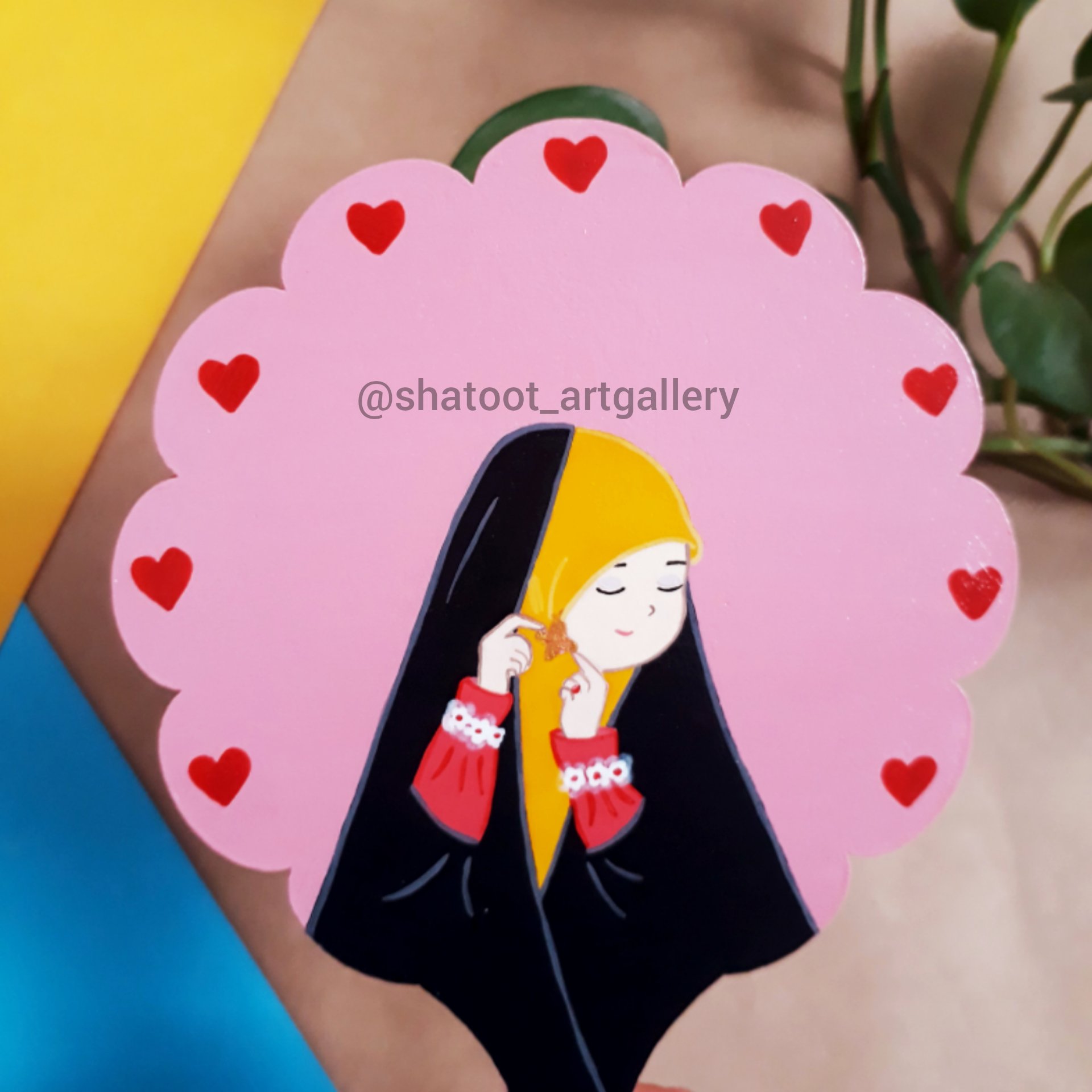 آینه دستی چوبی دخترانه ریحانه نقاشی شده با دست مبلمونسرا مدل 263072