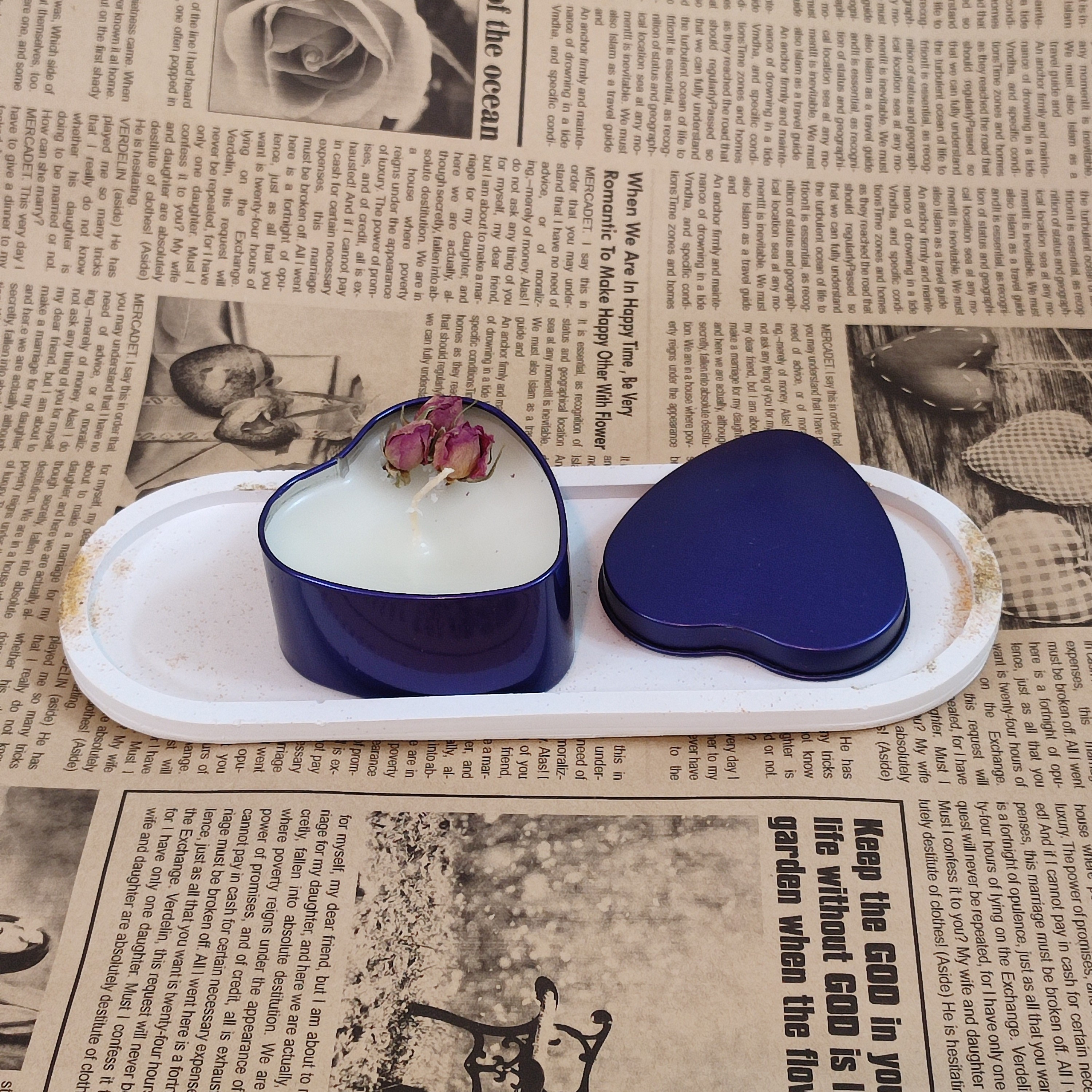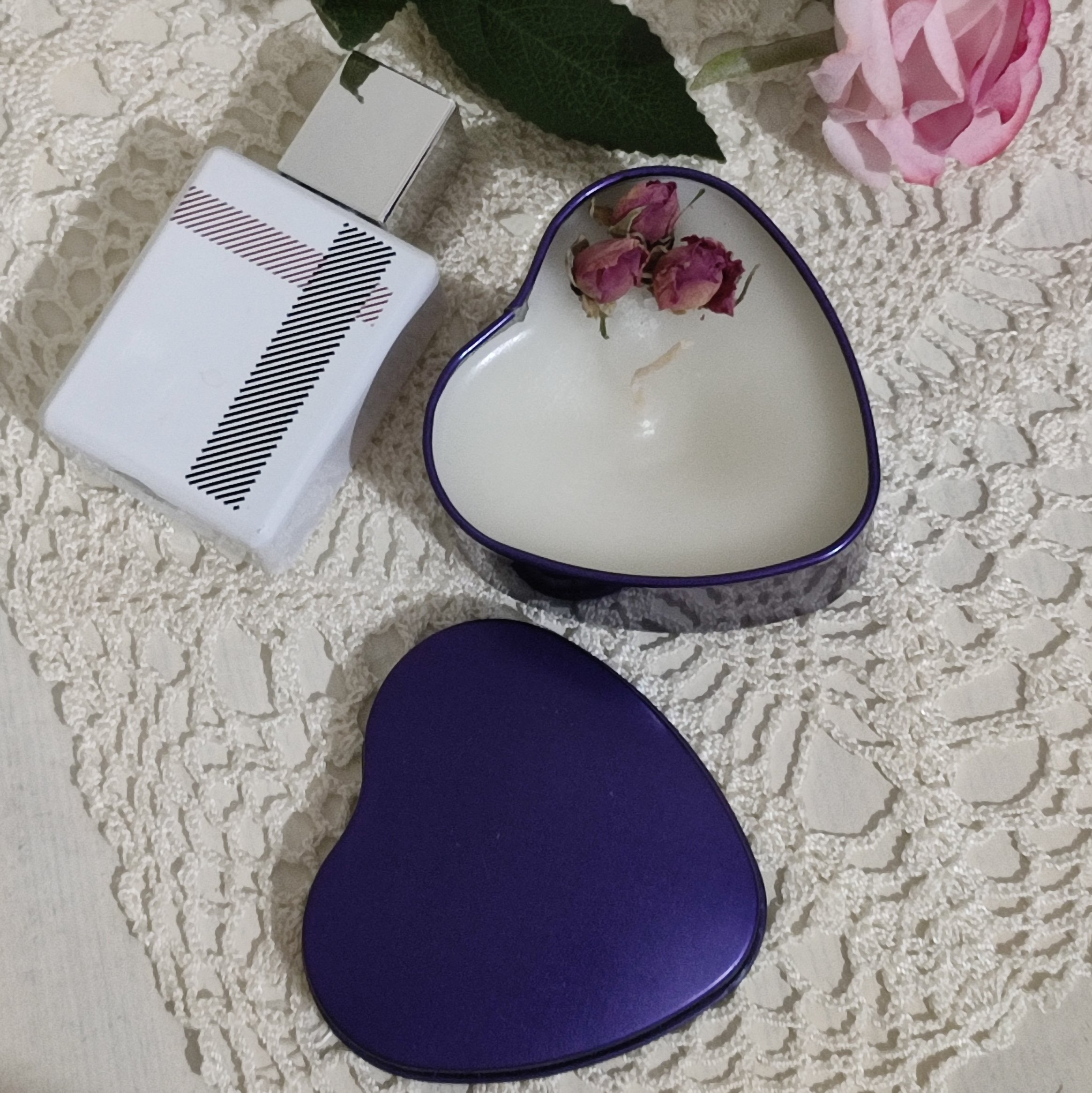 شمع دستساز تزئین شده با گل محمدی طرح قلبی بنفش مبلمونسرا مدل 280219