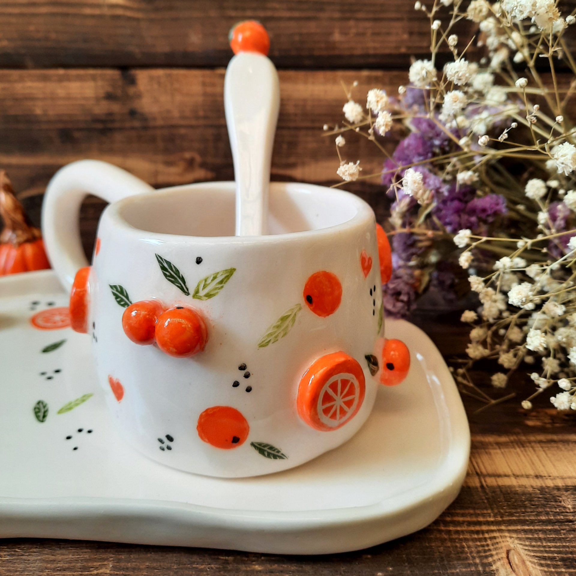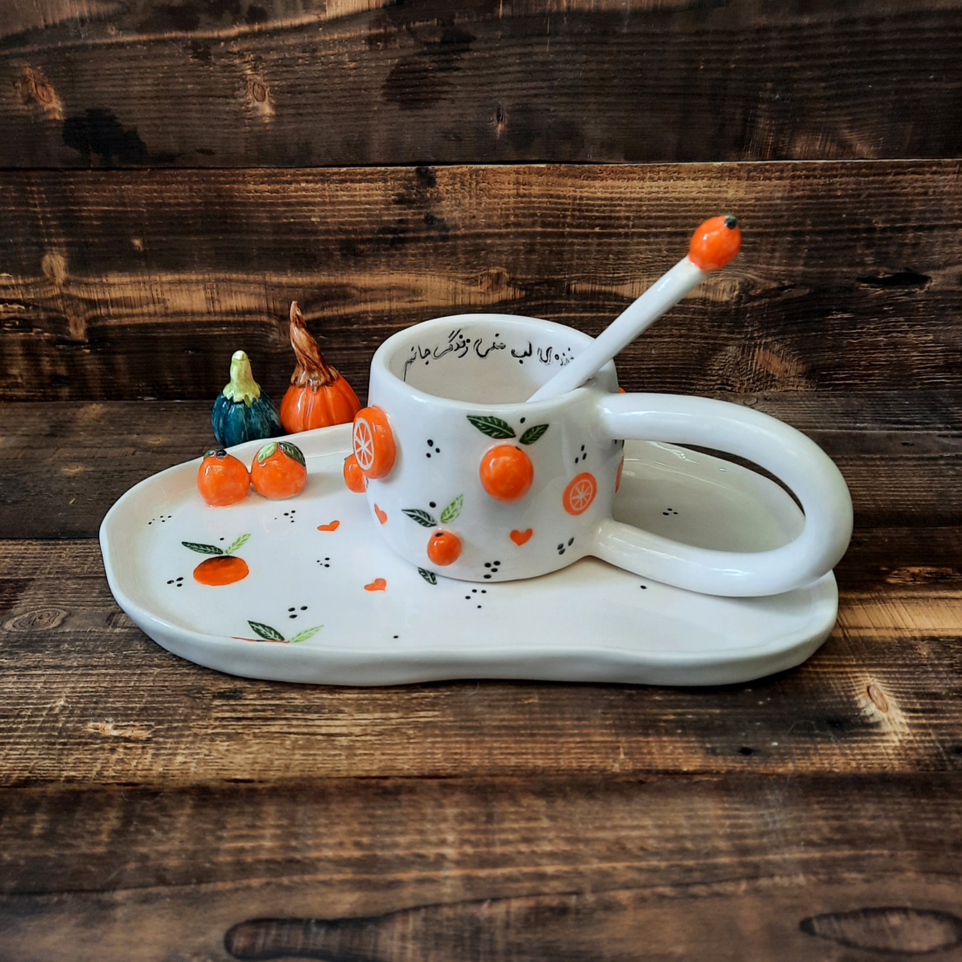 ماگ و زیر ماگی سرامیکی دفرمه پرتقالی مرمرسرامیک ارسال رایگان مبلمونسرا مدل 271869