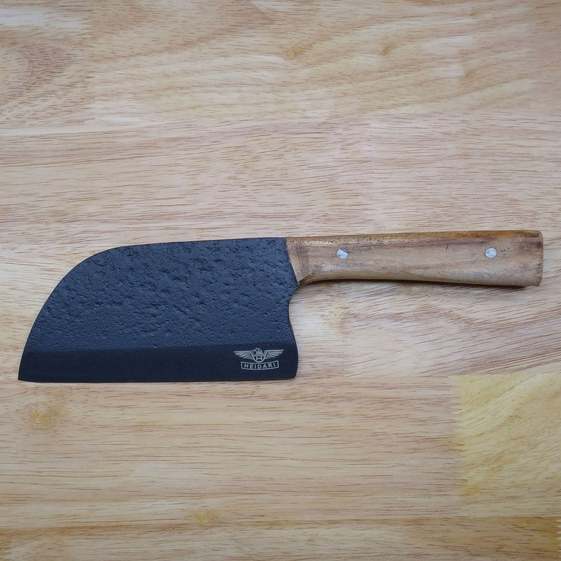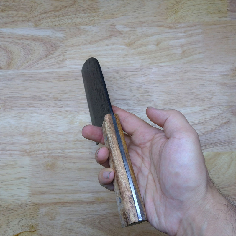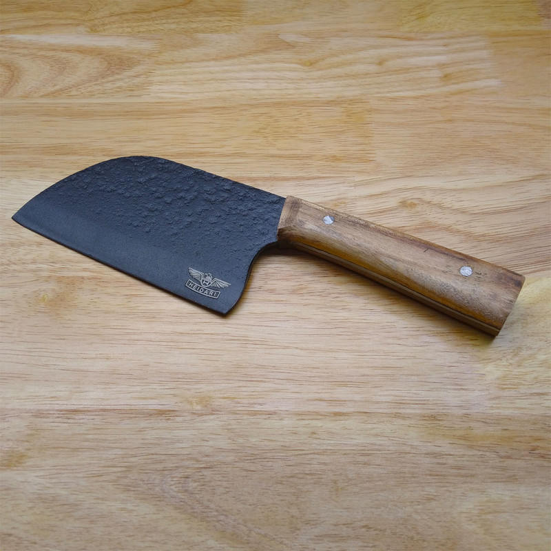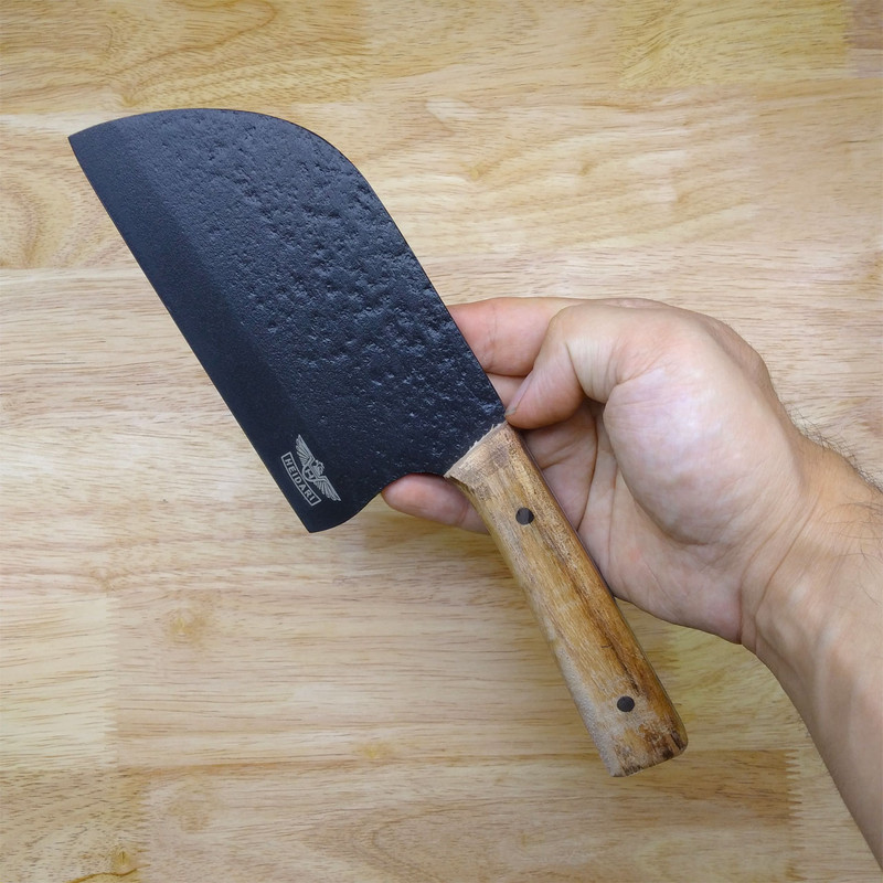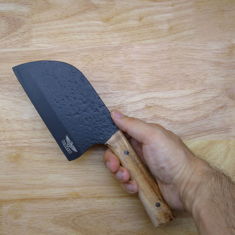 فک نکنیم این مدل نیاز به معرفی داشته باشد! چاقوی سرآشپز مدل صربستانی م که در مستند آشپزی در طبیعت به احتمال بسیار زیاد مشاهده کرده اید و چاقویی با طراحی خاص و زیبایی میباشد که طراحی آن به ساتورهای قصابی بسیار شباهت دارد ولی این محصول ساتور نیست و برای استخوان نباید مورد استفاده قرار گیرد بلکه سرتاسر تیغه به شدت تیز و نازک میباشد و برای انجام برش و آشپزی کردن بر روی تخته کار و تخته گوشت مورد استفاده قرار میگیرد و برای خرد کردن پیاز و سبزی و گوشت باید مورد استفاده قرار گیرد.طول کل این چاقوی سرآَپز صربستانی 32 سانتیمتر میباشد و شما از این 32 سانتیمتر 17 سانتیمتر در تیغه دارید و 14 سانتیمتر در دسته و 7 سانت نیز عرض تیغه ی این چاقوی سرآشپز میباشد از درجه کیفی و ساخت بسیار بالایی بهره میبرد و جز چاقوهای صربستانی خوش ساخت و عالی مجموعه چاقوی میباشد. اگر طبیعتگرد هستید و علاقه مند هستید هرازگاهی دل به طبیعت و گردش بزنید و دوست دارید در طبیعت نیز آشپزی کنید این چاقو صربستانی میتواند عضوی عالی برای شما در گردش ها باشد و به این چاقو لذت آشپزی را دو چندان کنید کیفیت ساخت بالا کاملا دستساز بودن دیگر به چیزی احتیاج نخواهید داشت. فولاد پرکربن به شما همیشه قدرت بالاتری نسبت به فولادهای نیکل دار و نیکل بالا میدهد ولی در مقابل رطوبت و مایعات دچار واکنش میشود و زنگ میزند حتما دقت کنید هنگام استفاده و هنگام نگهداری تیغه به مقدار کمی روغن پارافین آغشته باشد تا لکه و مایعات نتواند بر روی تیغه نفوذ کنند و موجب زنگ زدن شوند! اگر غفلت کردید و تیغه دچار زنگ زدگی شد میتوانید در روزهای اول با جلاسنج این زنگ زدگی را رفع کنید دقت کنید هر زمان تیغه کثیف شد سریعا تیغه را شسته و سریعا نیز تیغه را کاملا خشک و آغشته به چربی کنید. هر وسیله ای نیاز به استفاده اصولی و نگهداری اصولی دارد و چاقو نیز کاملا به مراقبت اصولی و استفاده اصئلی شما نیاز دارد.