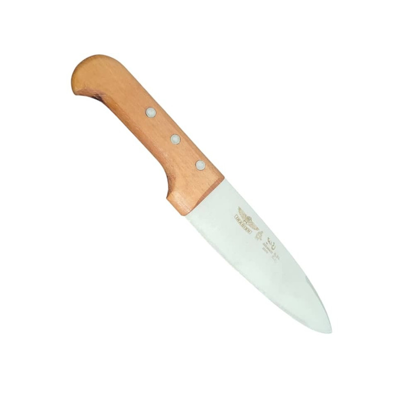 طول کلی 24.5 سانتیمتر ؛ طول دسته 12.5 سانتیمتر ؛ طول تیغه 12 سانتیمتر ؛ عرض تیغه 4 سانتیمتر ؛ ضخامت تیغه 3 میلیمتر می باشد. جنس دسته از چوب جنس تیغه از فولاد استیل ضدزنگ می باشد.