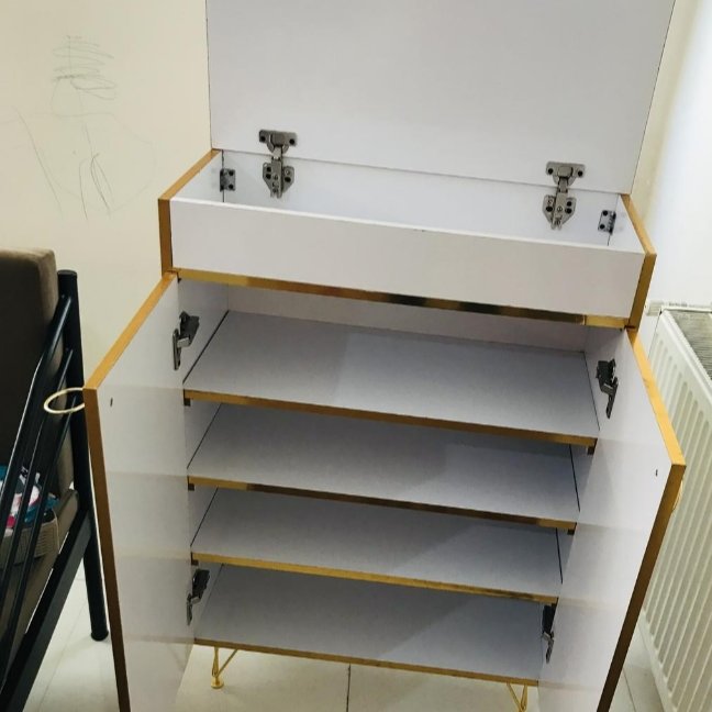 ارسال با باربری به سراسر ایران پایه های فلزی طلایی باکس بالایی درب داره جا دار لولا ها آرام بند