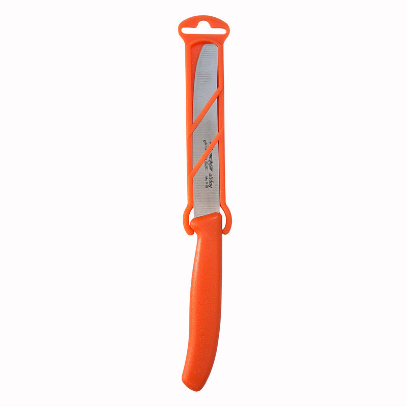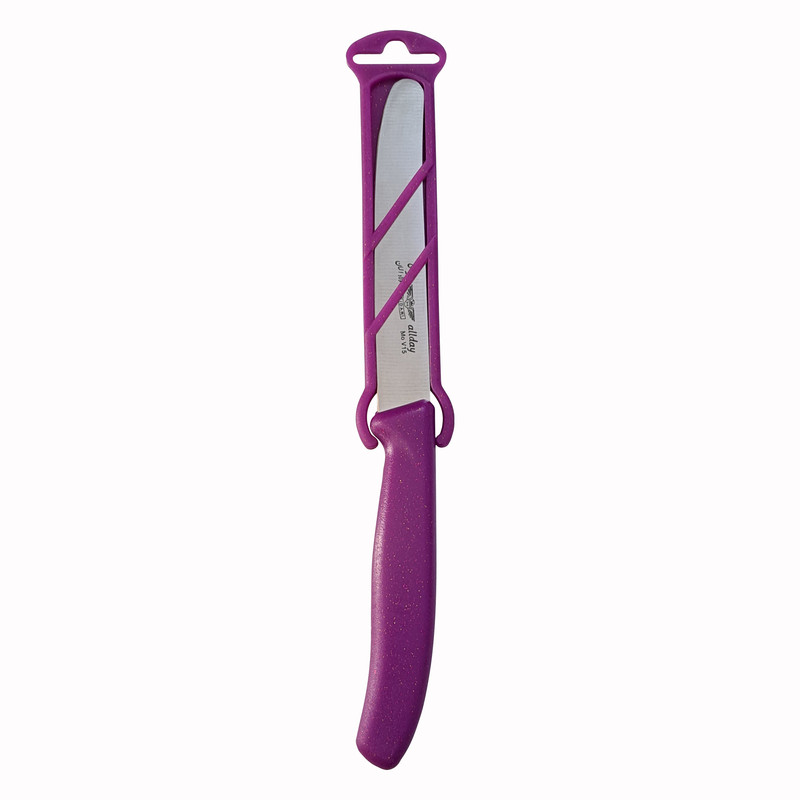 چاقو آشپزخانه مدل غلافدار کد شاینی تولید کارخانه می باشد. جنس تیغه فولاد آلمان می باشد و جنس دسته پلاستیک فشرده شاین شده می باشد. طول تیغه این چاقو 11 سانتی متر و طول دسته 11.5 سانتی متر می باشد. ابعاد چاقو با قلاف 23.5*3.3*1.3 سانتی متر می باشد. وزن چاقو 35 گرم می باشد.
