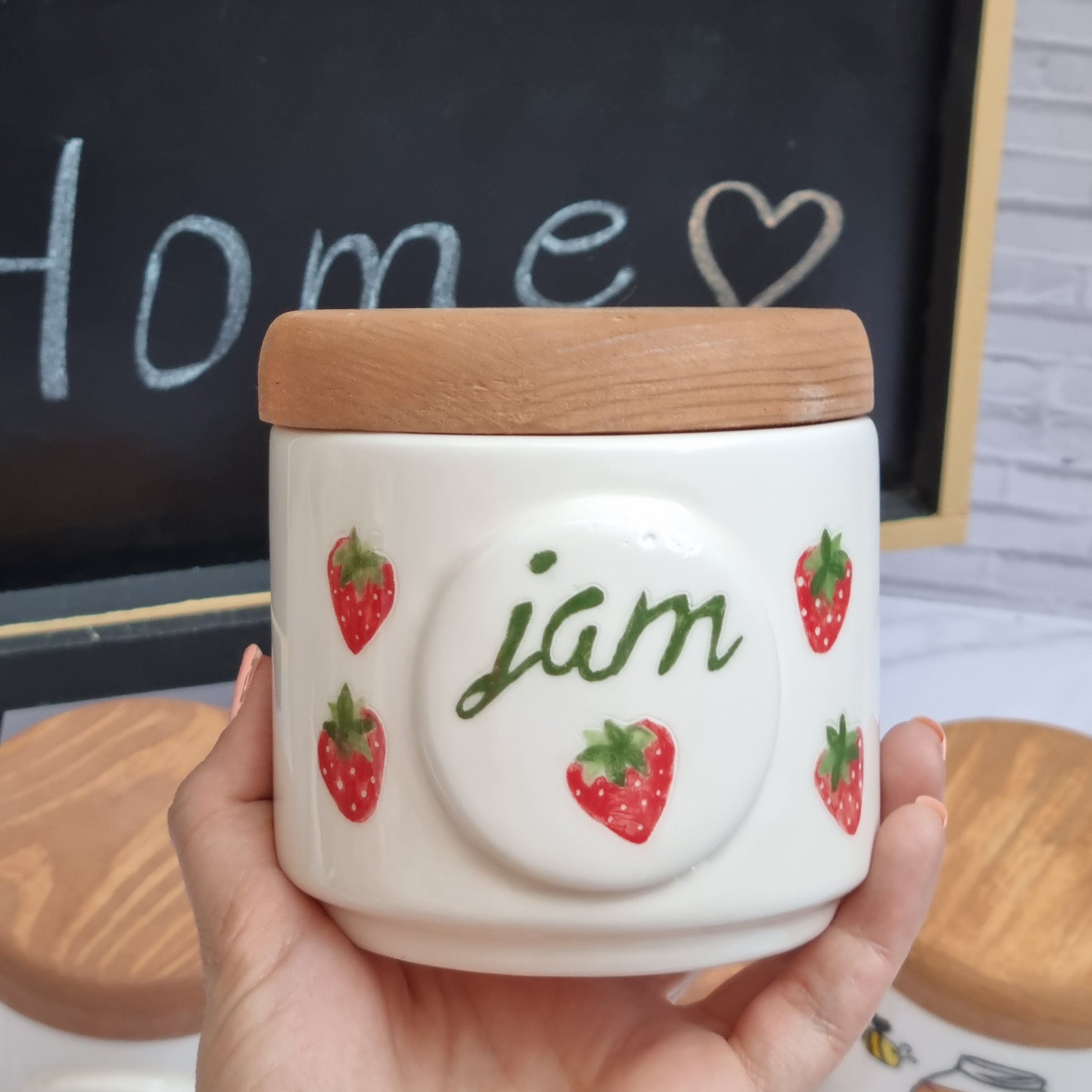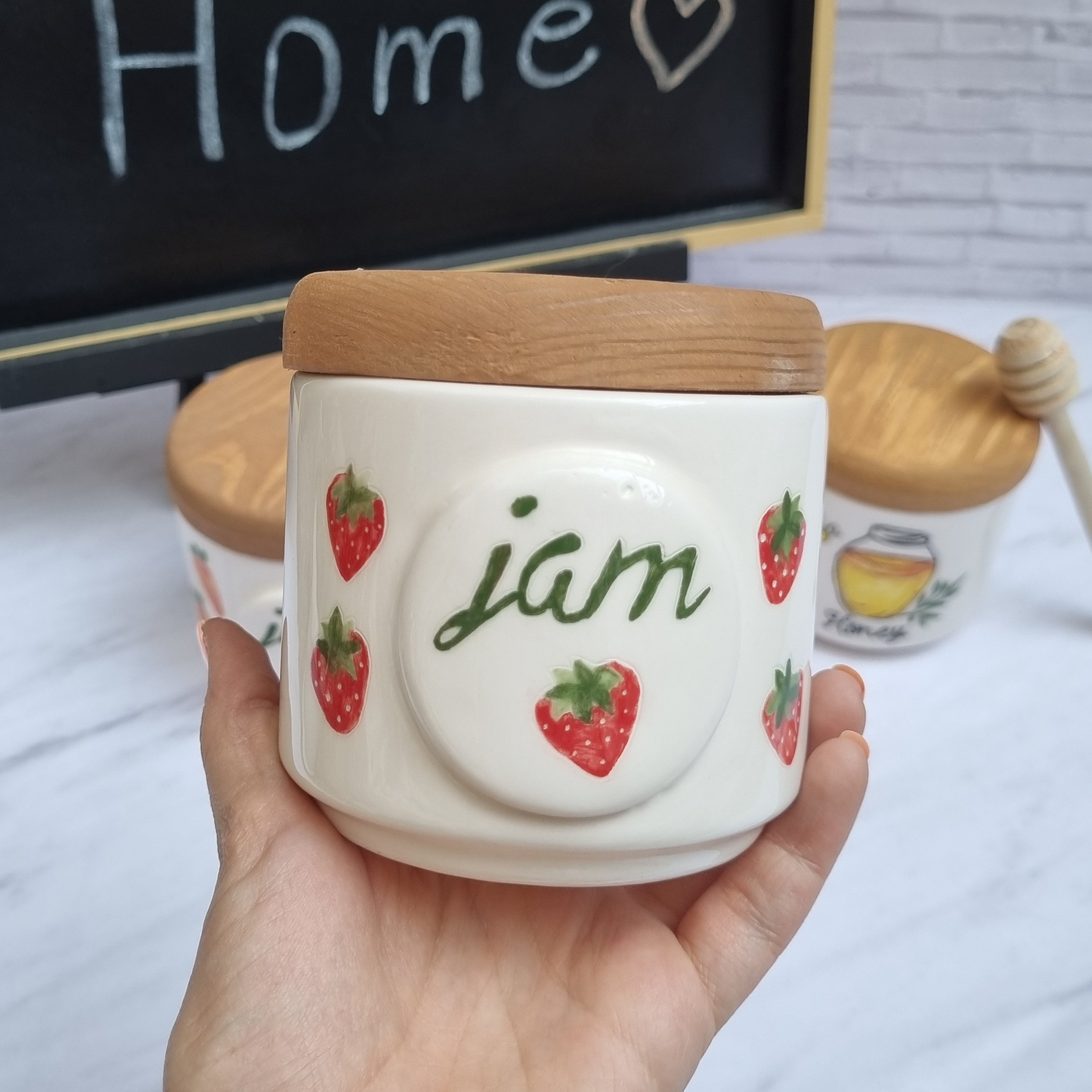 ظرف سرامیکی بسیار با کیفیت پخته شده در دمای 1100 درجه و مقاوم در برابر حرارت و قابل استفاده در ماشین ظرفشویی و رنگ ثابت و نقاشی شده با دست ، درب چوبی ضخیم و با کیفیت بالا دارا می باشد.