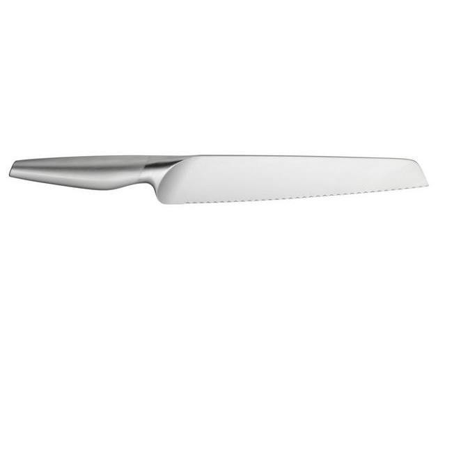 یک چاقوی مخصوص نان توسط WMF را کشف کنید که مخصوص برای نیازهای سرآشپزهای حرفه ای طراحی شده است . این چاقوی نان درجه یک دارای یک لبه دندانه دار دوگانه است که برای بریدن پوسته های سفت یا نان نرم با دقت کامل ایده آل است . فناوری برش پرفورمنس تیزی طولانی مدتی را ارائه میکند . با فولاد تیغهای ویژه غیرخورنده و مقاوم در برابر اسید غذایی ساخته شده با دست که دوام چشمگیر را نوید میدهد . این مجموعه ممتاز شریک ایدهآلی در آشپزخانه را برای حرفهایهای واقعی آشپزی ارائه میدهد که به دنبال دقت نهایی در برش همراه با طراحی زیبا هستند . پرداخت بدون درز از ویژگی های طراحی منحصر به فرد این چاقوهای آشپزخانه است که تمیز کردن راحتی را ارائه می دهد .