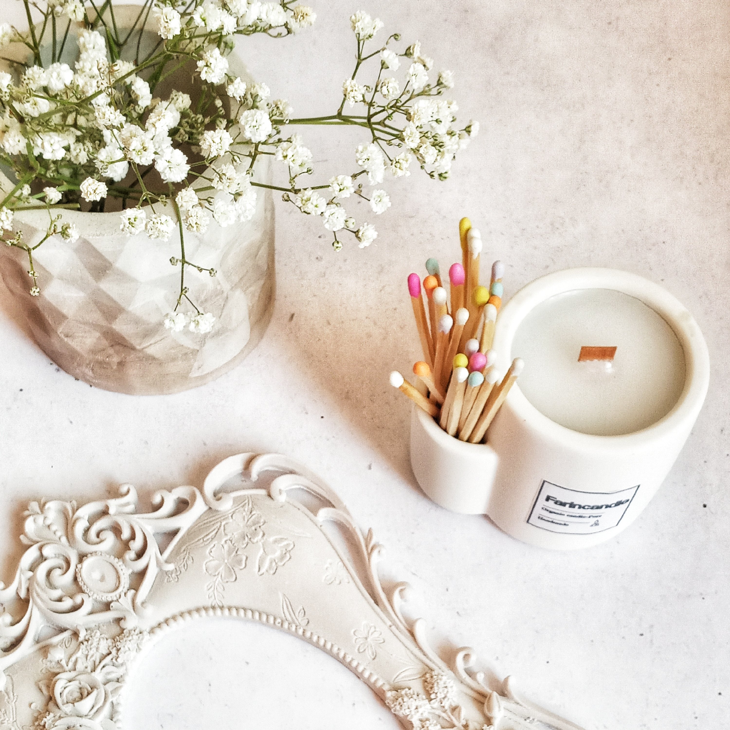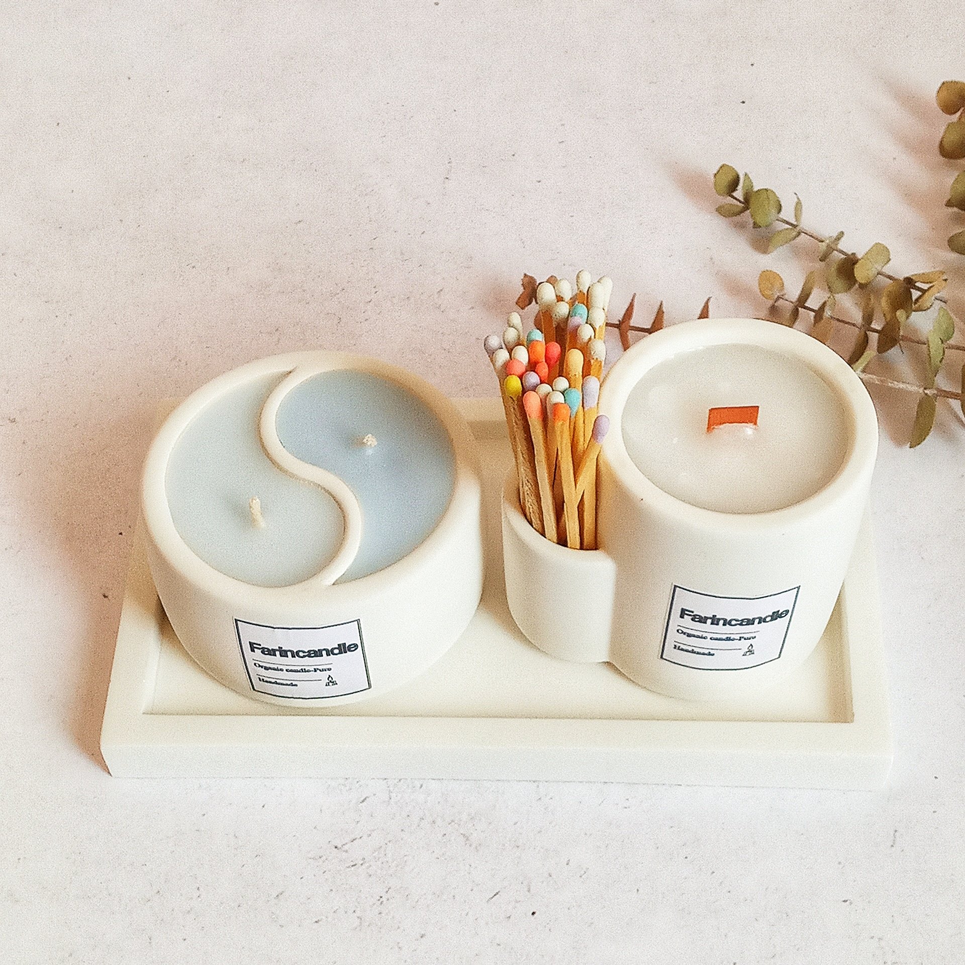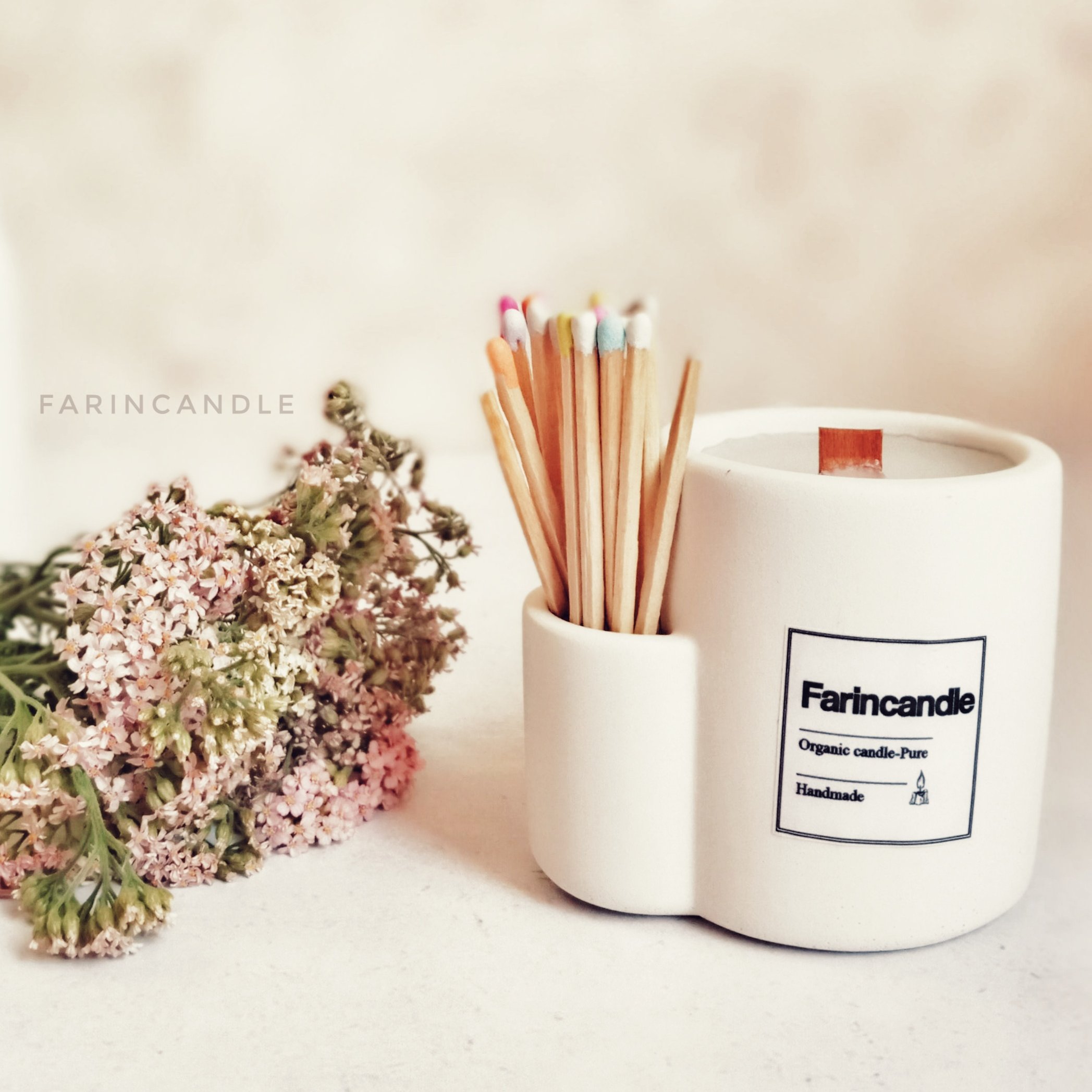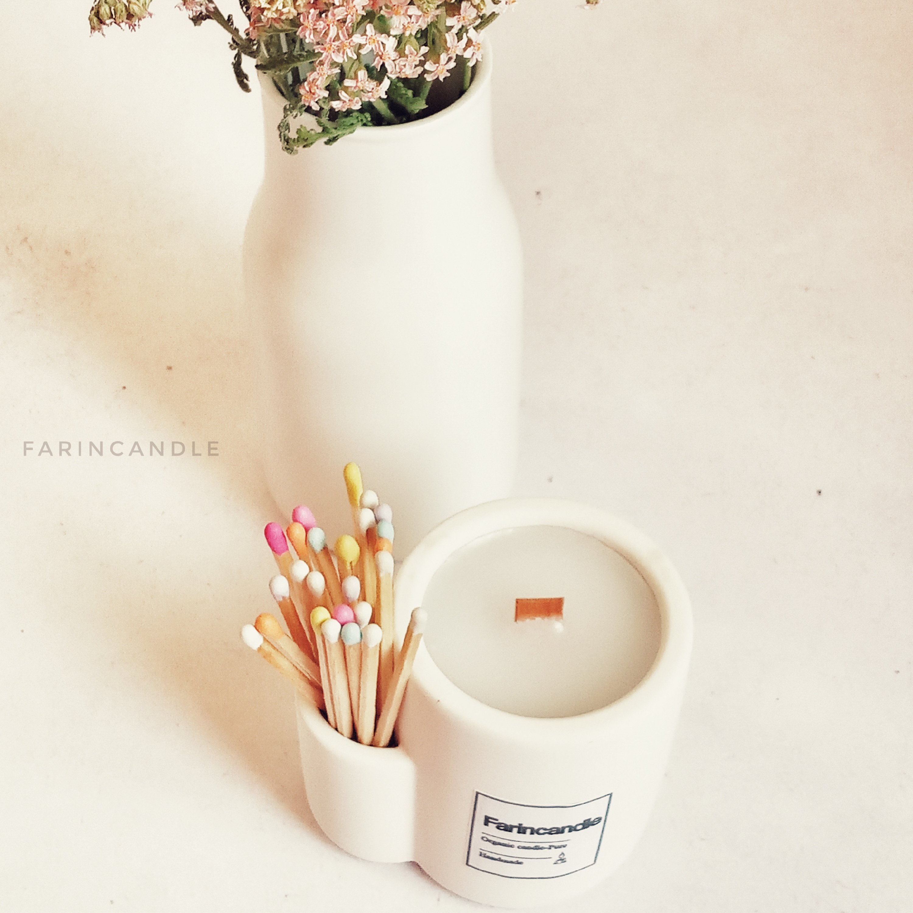 شمع بتنی جیب دار با فیتیله چوبی یا نخی همراه با 25عدد کبریت بلند رنگی مبلمونسرا مدل 280053