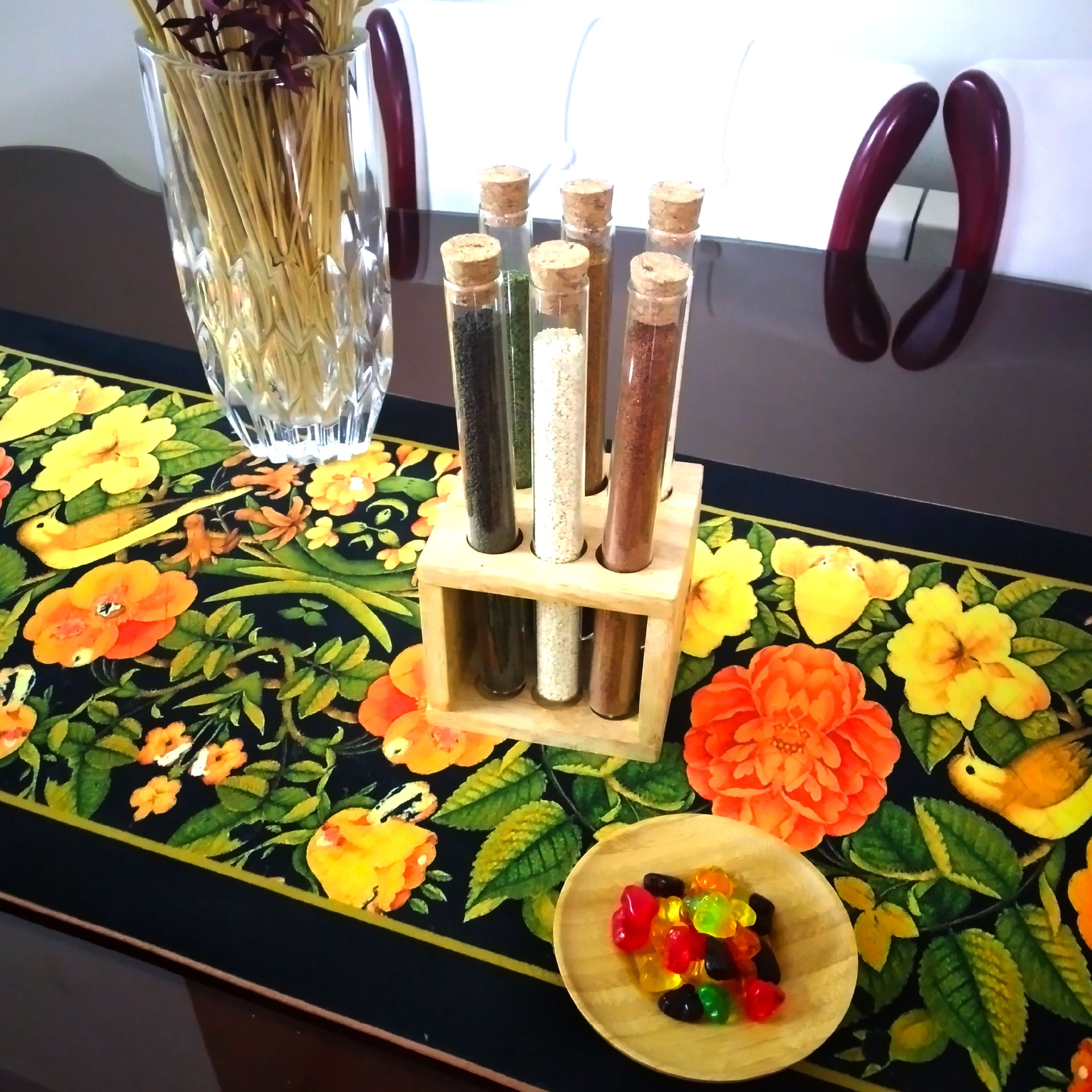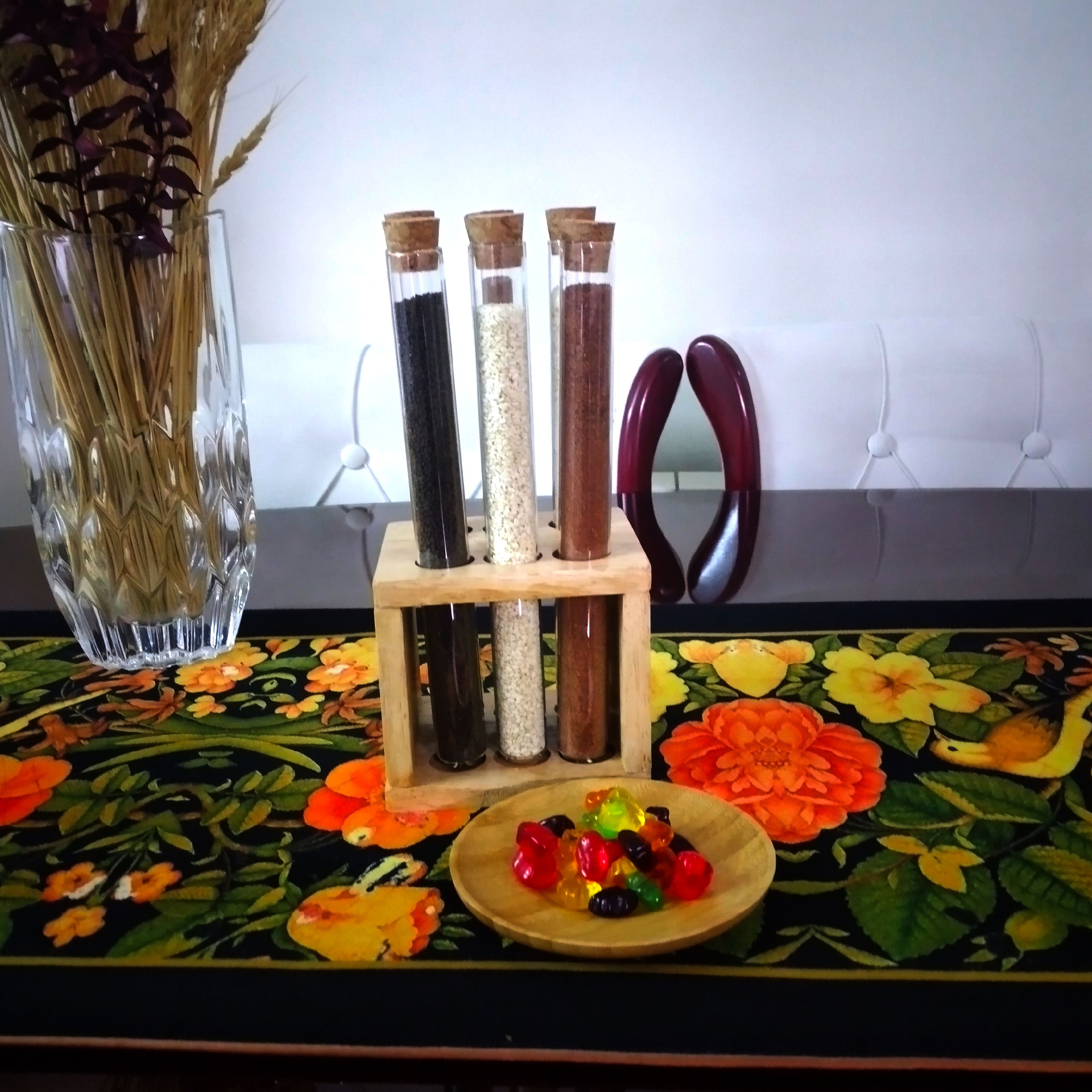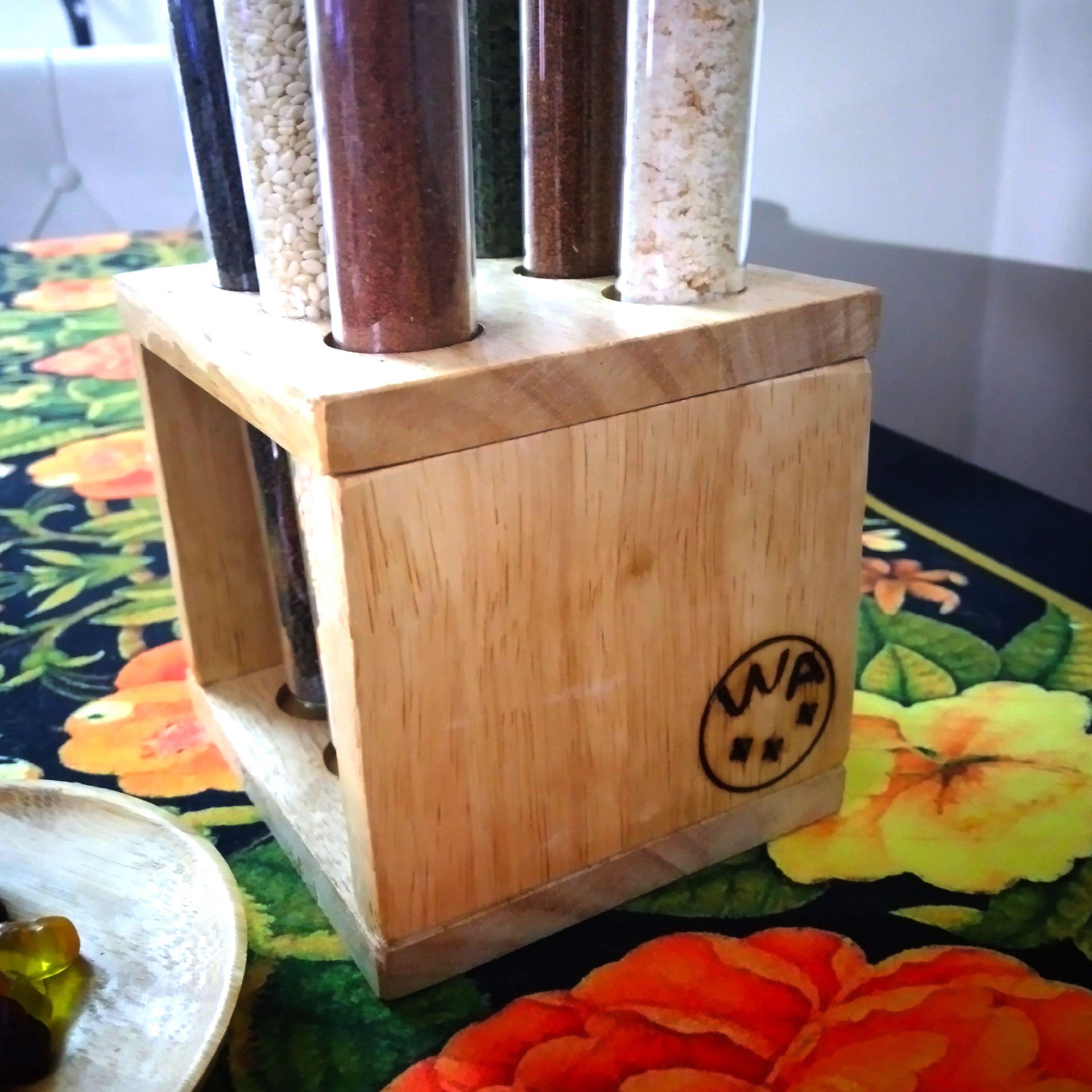 جاادویه ۶ تایی، ساخته شده از چوب رابروود، به همراه شش عدد بطری پیرکس با در چوب پنبه