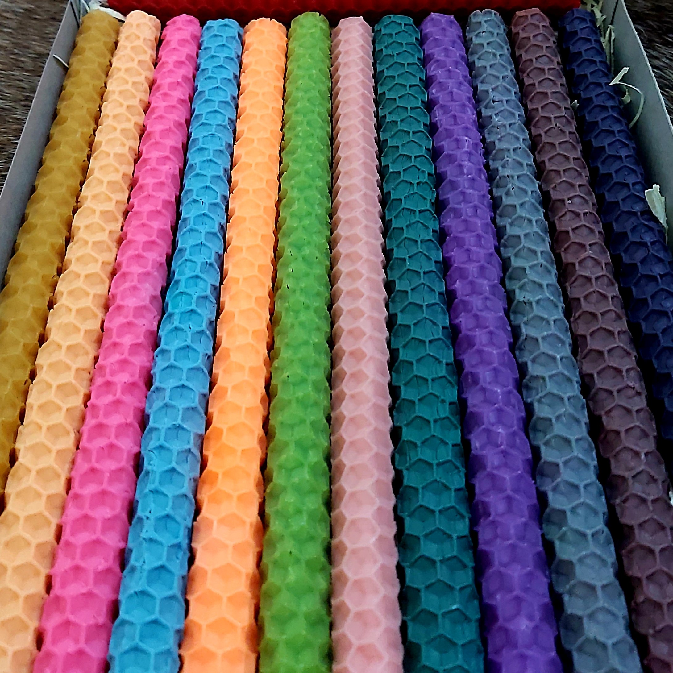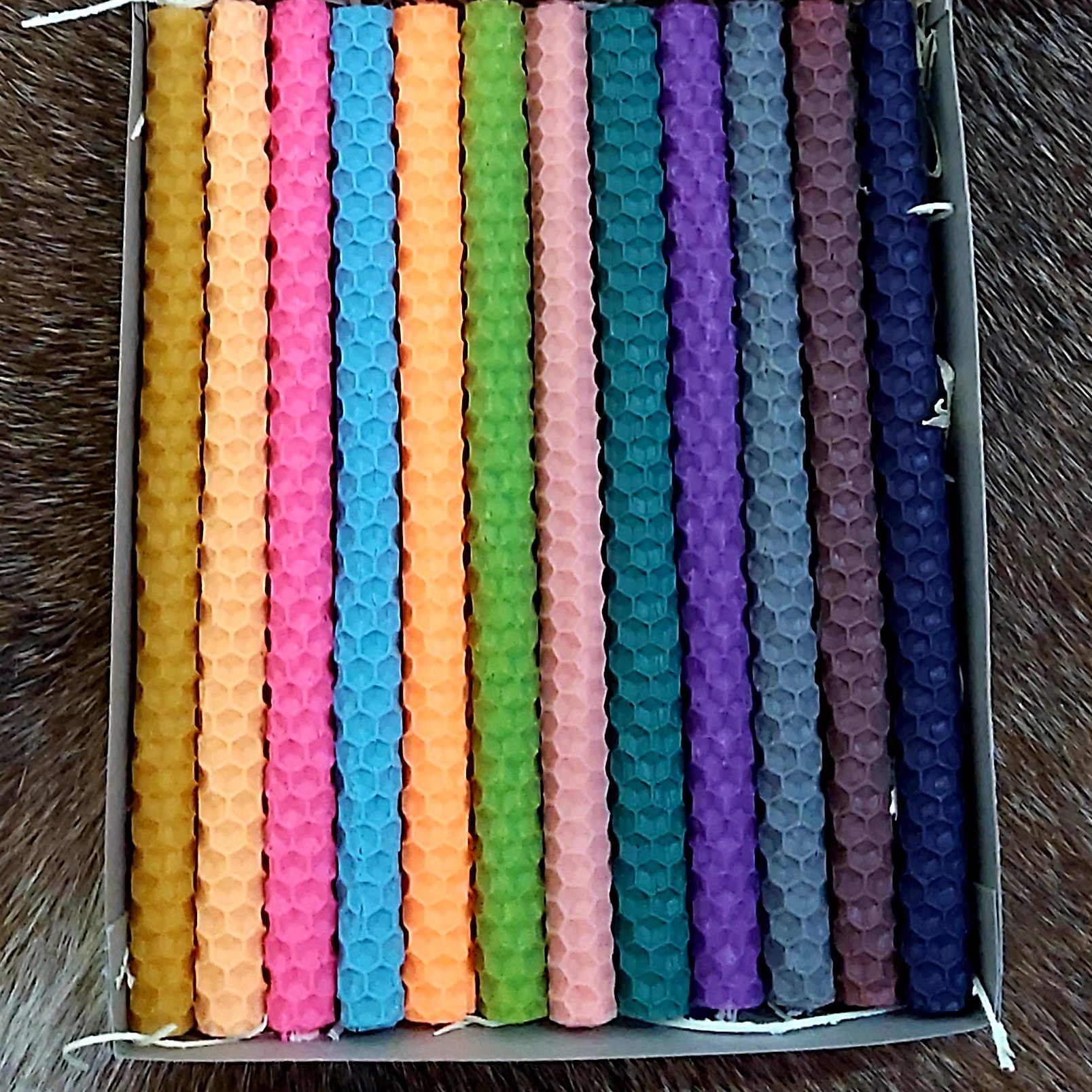 شمع بیزوکس قلمی طرح مداد رنگی تعداد ۱۲ رنگ شاد و جذاب پاستلی ارتفاع ۱۸ سانت با قطر ۱ سانت بهمراه باکس هدیه