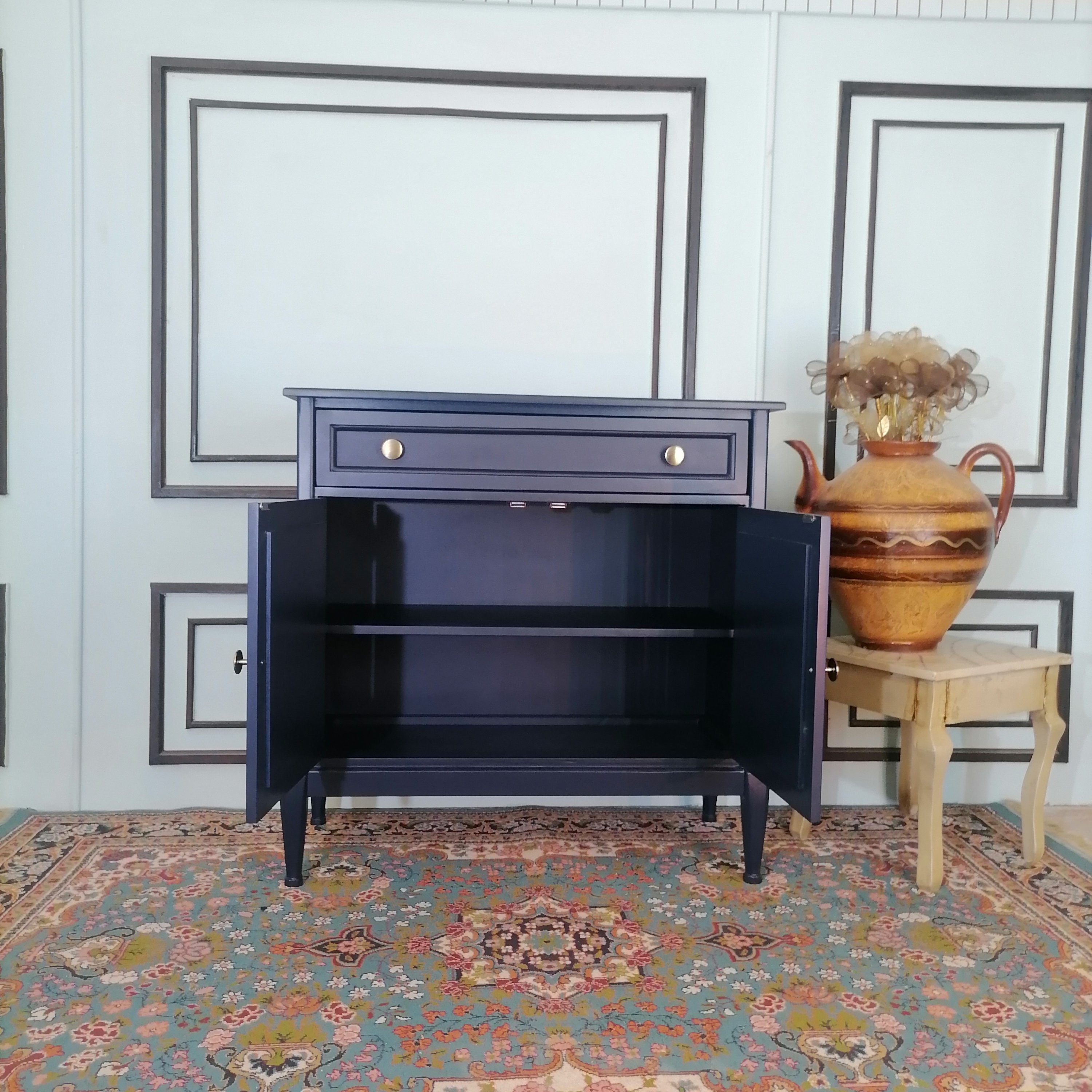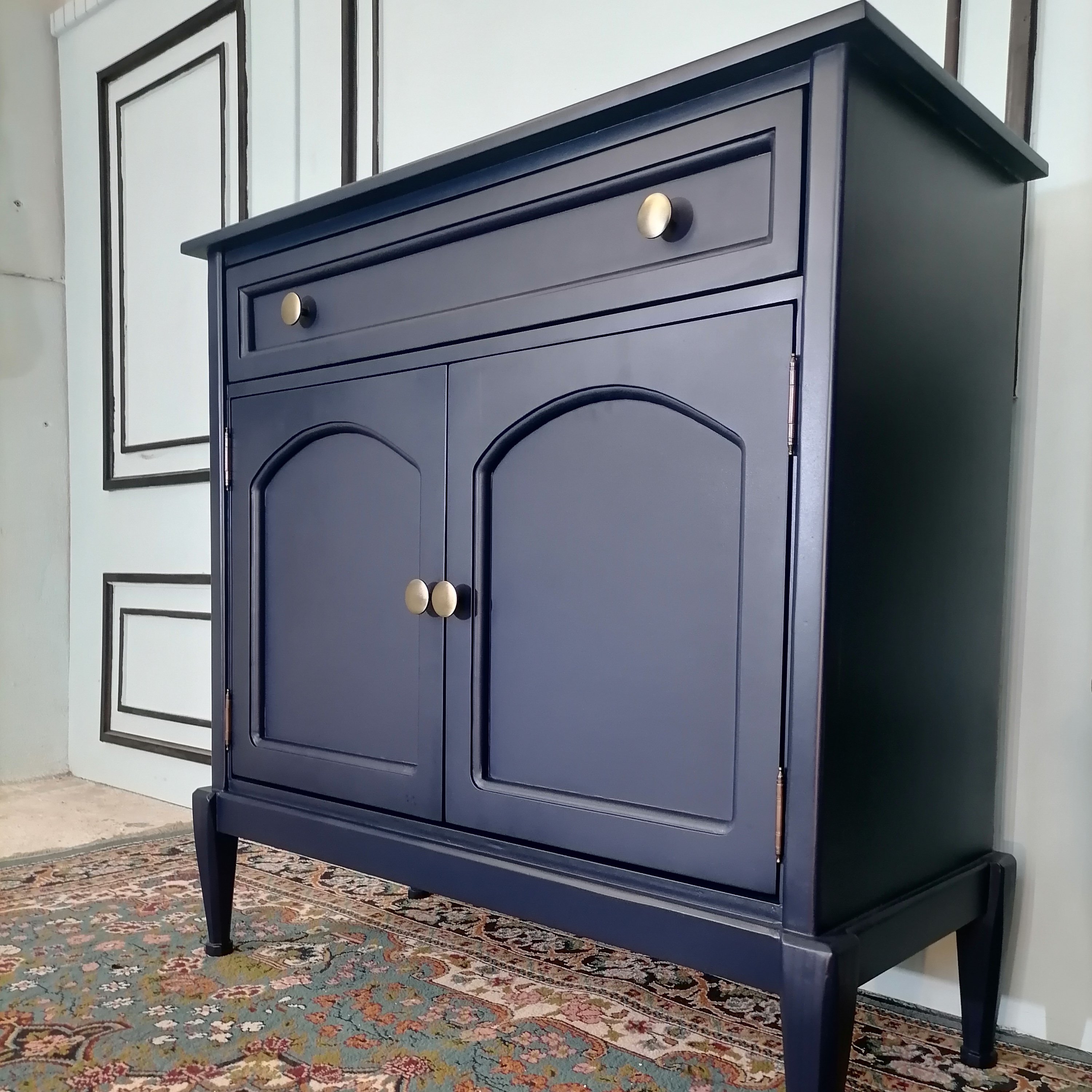کنسول کنارسالنی دودرب سرمه ای 😍 یه میز کنسول نقلی با ابعاد 90/90/40 که داخل کنسول دو طبقه هست . همین باعث شده که کنسول خیلی جادار و مناسب برای چیدمان ظروف و وسایل باشه. متریال 🪵 پایه ها چوب روس ، بدنه ام دی اف خام ، رنگ پوششی و پلی استر رنگبندی به صورت سفارشی دلخواه شماست 🌈 ارسال به سراسر کشور داریم 🚛 هزینه ارسال به عهده مشتری و به صورت میباشد .