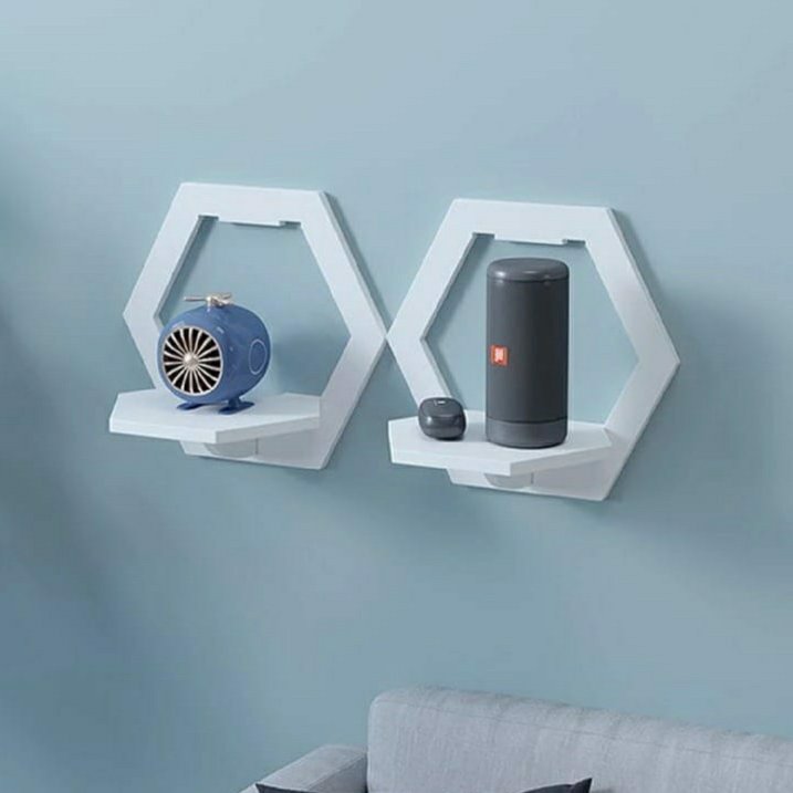 شلف دیواری شش ضلعی با ظاهری ساده نمایی هندسی بسیار زیبایی دارد ترکیب ۵ عددی این شلف ها در زوایای مختلف در کنار هم جلوه های متفاوتی به منزل شما می دهد