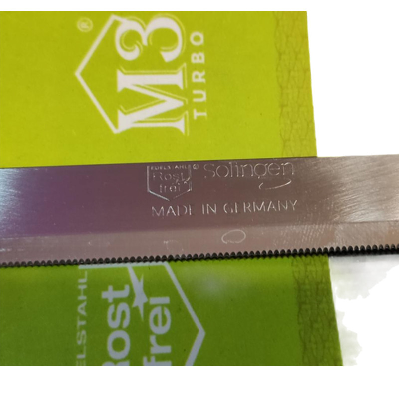 دستگیره دستی دبی (Dubai) چاقو اره ای زولینگن (Solingen) آلمانی لیزری دسته رنگی، دارای سطح صیقلی براق است. چاقو زولینگن مدل M3 Turbo لیزری بسیار تیز و بادوام و با طول عمر بالا و تیغه های این چاقو اره ای است و بسیار بسیار برنده هستند .