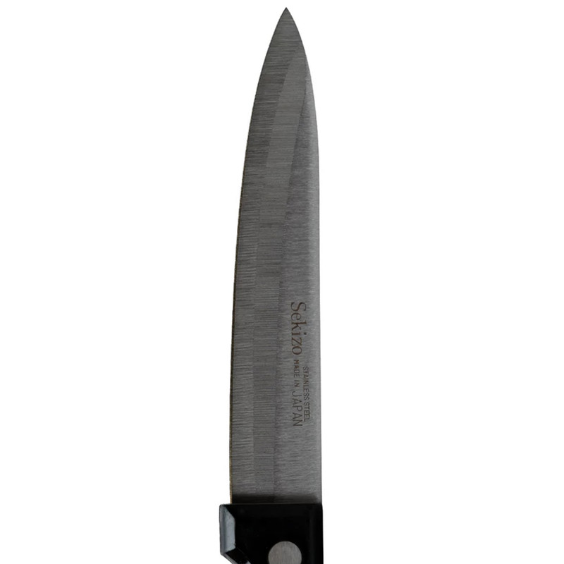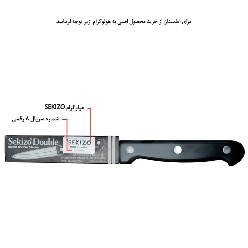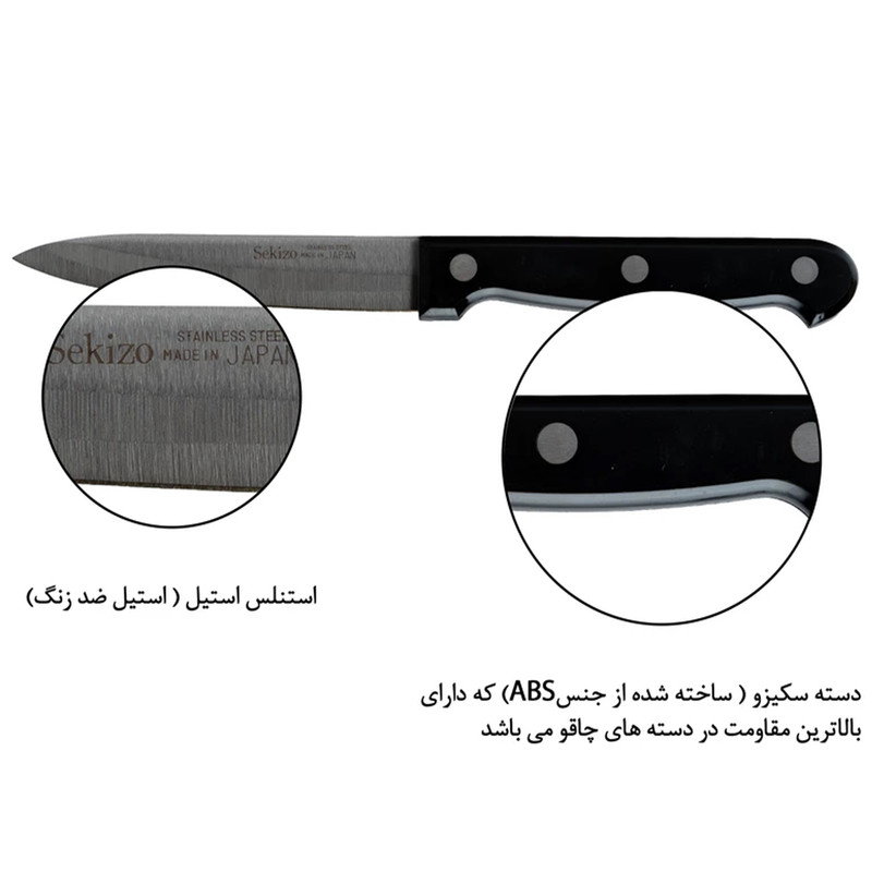 سکیزو از قدیمی ترین برندهای تولیدکننده چاقو و ابزار برنده در کشور ژاپن می باشد . محصولات این برند در اکثر نقاط جهان در منازل و یا وران ها در حال استفاده می باشند . چاقو سکیزو به ل استفاده از با کیفیت ترین متریال می تواند سالها قابل استفاده باشد . این محصول چاقو سکیزو مدل 2000 می باشد که ساخته شده از فولاد ضد زنگ می باشد . تیغه حرفه ای ساخته شده از فولاد این محصول تضمین می کند که در استفاده برشی صاف ، آسان داشته باشید . دسته چاقو از جنس ABS ساخته شده که بسیار سخت و م می باشد و کاملا جلا خورده و از طریق 3 پرچ فولادی م به چاقو متصل گردیده است. از این چاقو می توانید در آشپزخانه ، محل کار و یا باغ و کمپینگ استفاده نمایید. برای اطمینان از اصلی بودن محصول به هولوگرام سکیزو که دارای شماره سریال 8 رقمی می باشد توجه فرمایید.