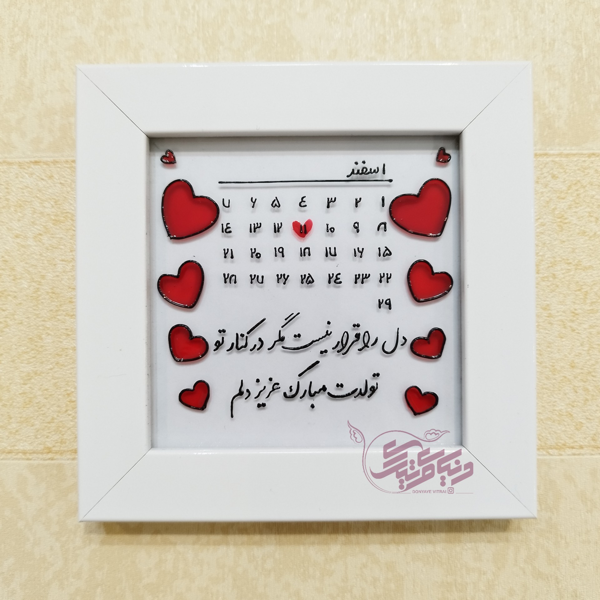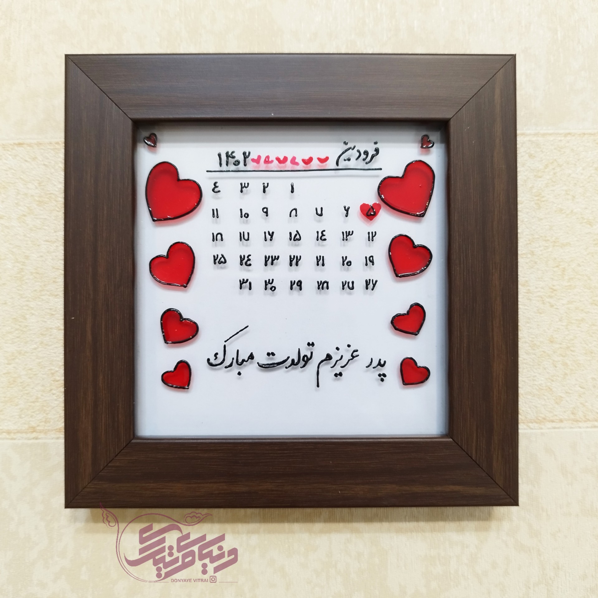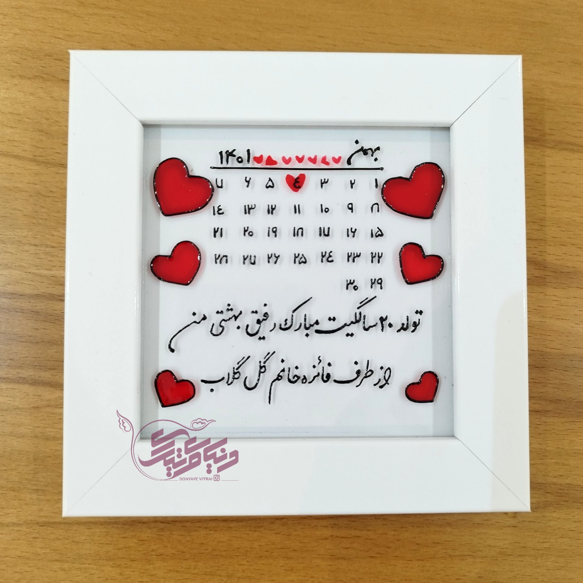 تابلو ویترای تقویمی طرح قلب، قاب ویترای - گیفت، هدیه، کادویی، سالگرد ازدواج، تابلو مناسبتی، نقش برجسته و براق مبلمونسرا مدل 266945