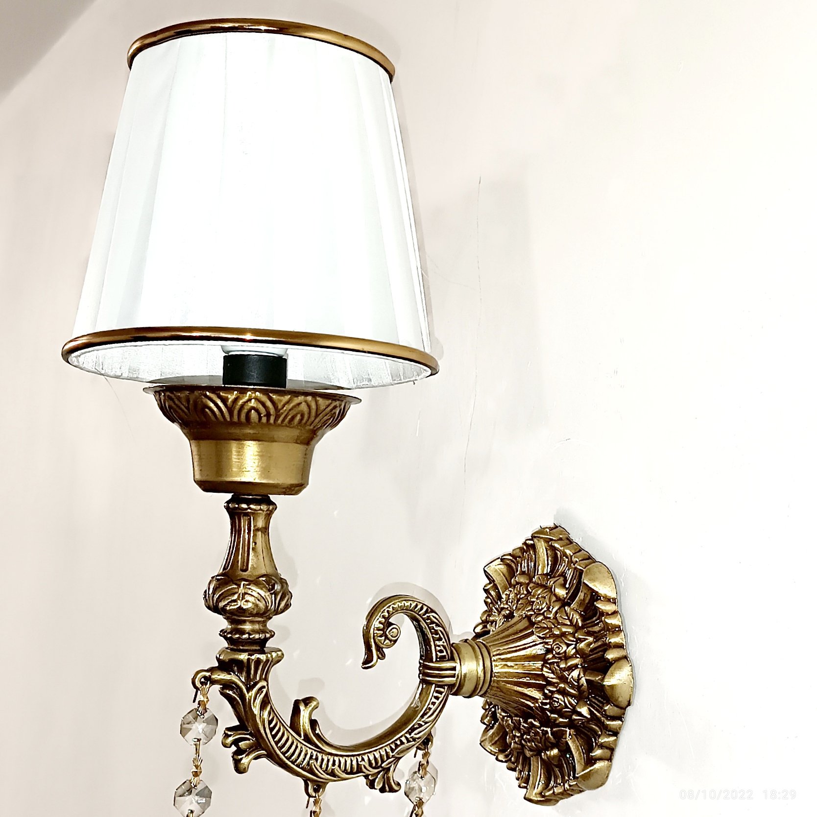 چراغ خواب یا آباژور دیواری مدل گلوریا رنگ آنتیک شید سفید یا کرم ابعاد از دیوار تا انتهای شاخه 20 سانتی متر کلیه محصولات دارای ضمانت نامه کتبی رنگ و گارانتی اصالت و سلامت فیزیکی کالا می باشد .