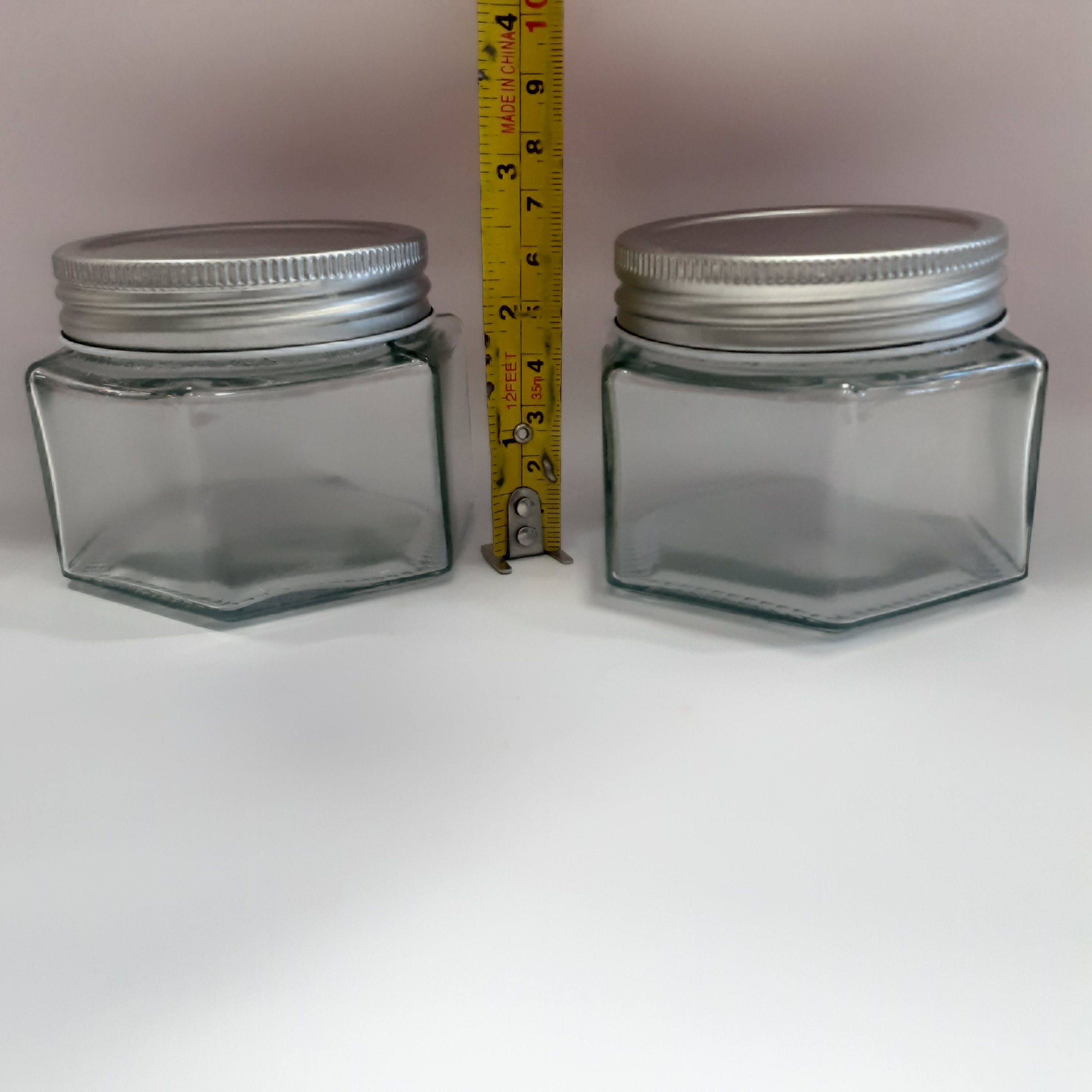 شیشه حبوبات شش ضلعی ارتفاع 7 سانت قطر دهانه 7 سانت درب کارنتینری