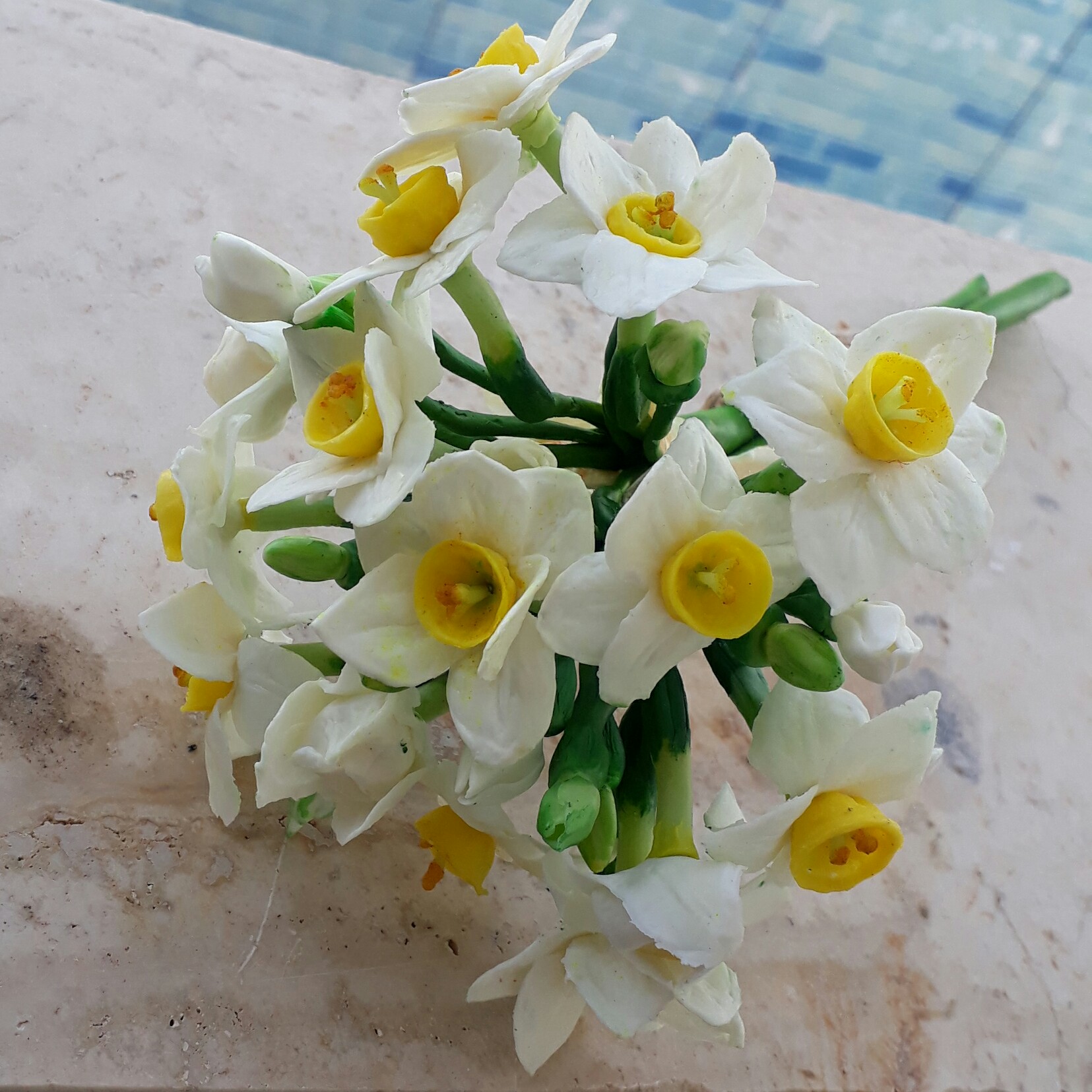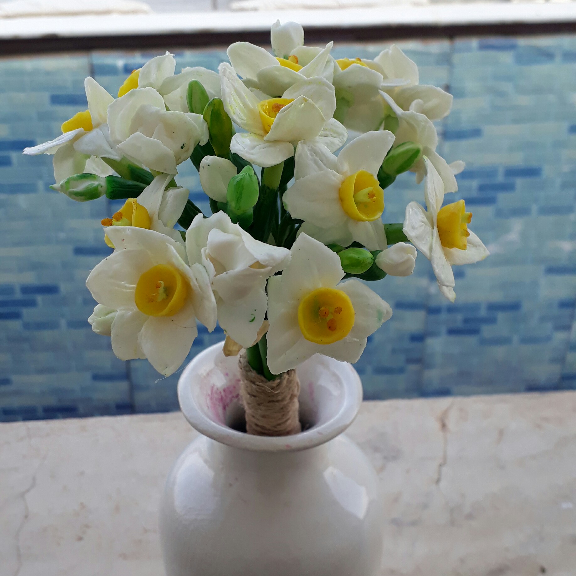 گلهای شاخه ایی گل نرگسر با خمیر منعطف نشکن تمام کارها از صفر تا صد تماماً با دست هستن با خمیر منعطف بدون گلدان شاخه ای مبلمونسرا مدل 258930