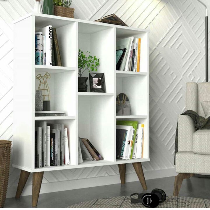 کتابخانه ساخته شده از چوب ام دی اف و پایه های خراطی شده. قابل سفارش در رنگ های مختلف