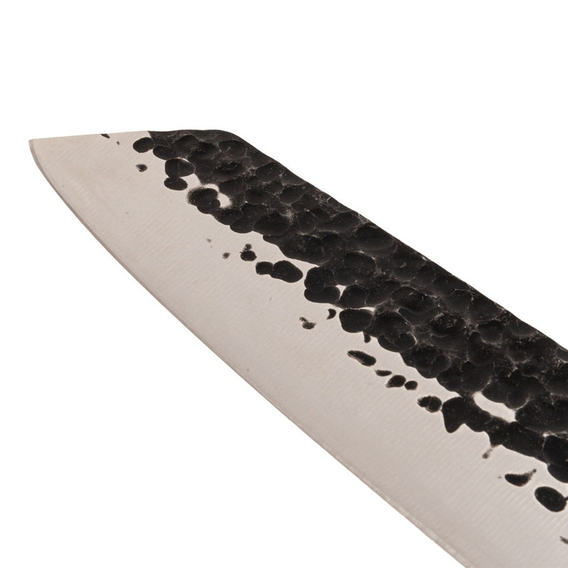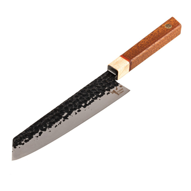 چاقو با تیغه فولاد ژاپنی با تیغه فورج شده از فولاد ضد زنگ 5Cr15MoV ساخته شده، یک انتخاب عالی برای سرآشپزها، ورانها و هتلها است. این چاقو با طراحی حرفهای و ویژگیهای منحصر به فرد خود، توانسته به عنوان یک ابزار کارآمد و مقاوم، تجربهای عالی در آشپزی حرفهای به ارمغان آورد. ویژگیهای چاقو تیغه فولادی: - فولاد ضد زنگ 5Cr15MoV: فولاد 5Cr15MoV یک فولاد ژاپنی است که به ل داشتن مقدار مناسب کروم، مقاومت بالایی در برابر خوردگی دارد. این فولاد علاوه بر سختی 52±2 راکول C، در برابر فرسایش و زنگ زدگی مقاومت زیادی از خود نشان میدهد و باعث افزایش طول عمر چاقو میشود. - تیز کردن آسان: این چاقو به راحتی با ابزارهای مناسب تیز میشود، که این ویژگی برای محیطهای شلوغ و پرکار مانند ورانها و هتلها اهمیت زیادی دارد. این ویژگی نیاز به نگهداری مداوم را کاهش میدهد و به سرآشپزان این امکان را میدهد که به راحتی تیغه را در وضعیت ایدهآل نگه دارند. - مقاومت در برابر ضربه: این چاقو علاوه بر مقاومت در برابر خوردگی، قادر به تحمل ضربات و نیروهای جانبی است. بنابراین، در محیطهای حرفهای مانند آشپزخانههای ورانی، جایی که ممکن است فشار و ضربات زیادی به چاقو وارد شود، عملکرد بینظیری خواهد داشت. - دسته چوبی: دسته چاقو از ترکیب چوب ساج آفریقایی، رز برزیلی و افرا با کیفیت بالا و مقاومت عالی در برابر مواد خوراکی، اسیدها و قارچها ساخته شده است.این چوب ها جزو چوب های گران قیمت در جهان هستند که دسته لایق این تیغه را به وجود آورده اند. دسته چوبی 8 ضلعی علاوه بر حفظ اصالت چاقوهای ژاپنی دارای استحکام بالایی هستند که تجربهای راحت و نومیک برای کاربر به ارمغان میآورد و در استفادههای طولانیمدت خستهکننده نمیشود. - عملیات فورج (چکشکاری): چاقوی سرآشپز با عملیات فورج ساخته شده است که باعث میشود تیغه از سختی بالا و استحکام بالایی برخوردار باشد. این عملیات علاوه بر بهبود عملکرد مکانیکی، ظاهری زیبا و منحصر به فرد به چاقو میدهد که میتواند جذابیت بصری بیشتری در آشپزخانههای حرفهای ایجاد کند. چرا سرآشپزهای حرفه ای، ورانها و هتلها باید این چاقو را بخرند؟ - مقاومت در برابر شرایط کاری سخت - افزایش بهرهوری و کارایی در آشپزخانهها - ظاهر شیک و مدرن - آسانی در نگهداری
