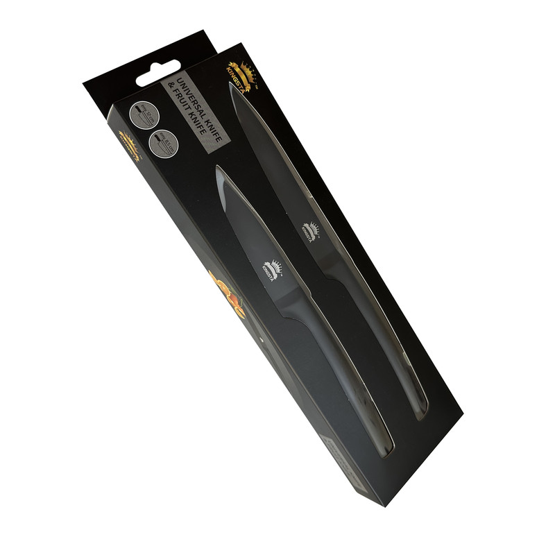 چاقوی آشپزخانه برند کینگ استا (KINGSTA) در بسته بندی 2 عددی ارائه می گردد. سایز تیغه چاقوها به ترتیب 12 سانتی متر و 8.5 سانتی متر و همرنگ دسته فلزی چاقو می باشد. این چاقو ها در بسته بندی شیک مناسب کادو ارائه شده است.