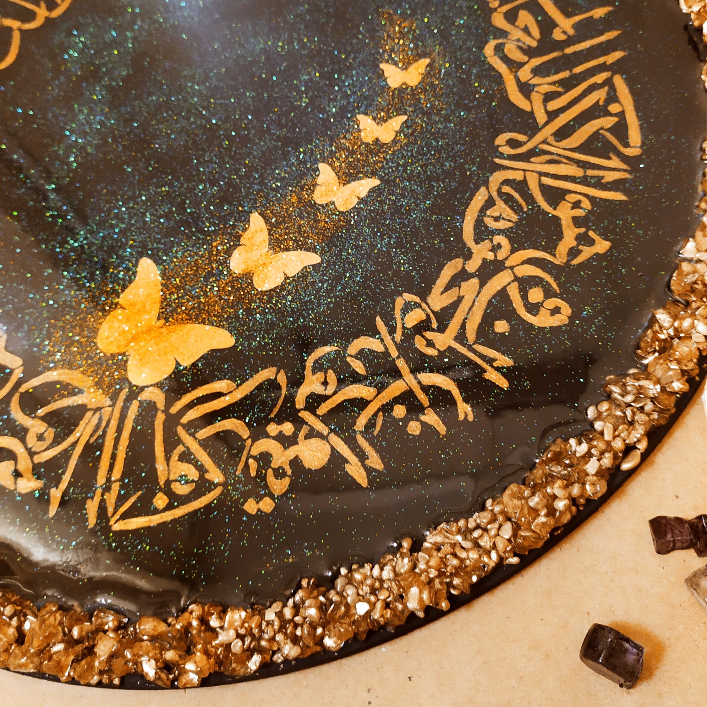 تابلو وان یکاد پروانه ای قطر 40 سانت کار شده با ورق طلاو رزین و سنگ مبلمونسرا مدل 267581