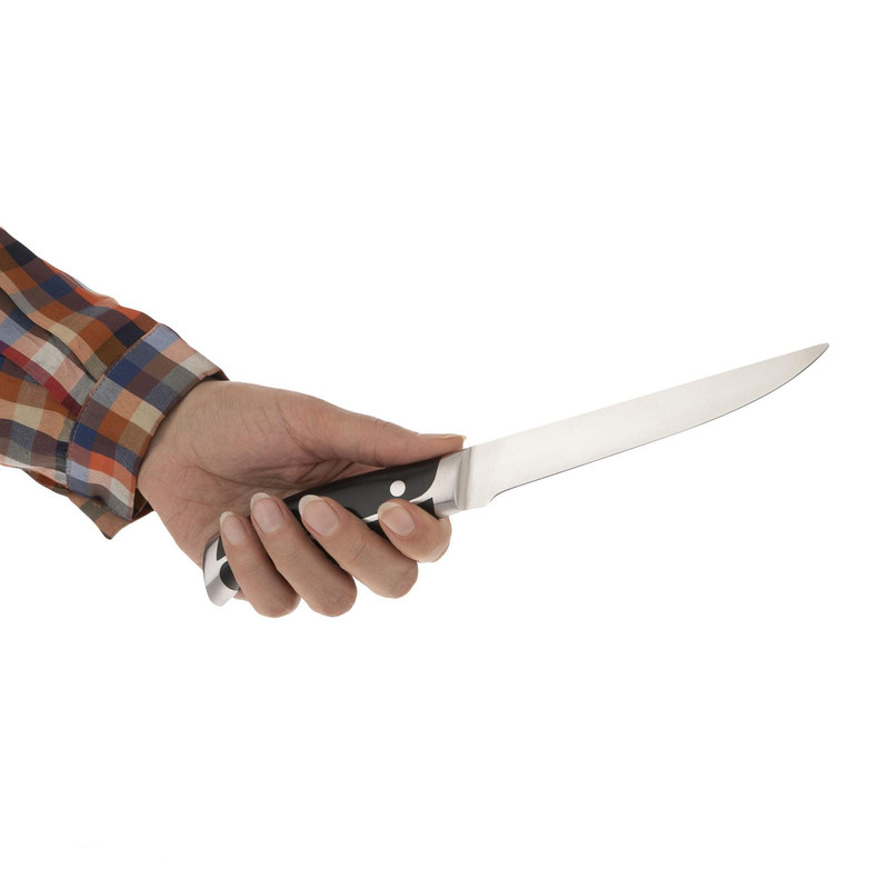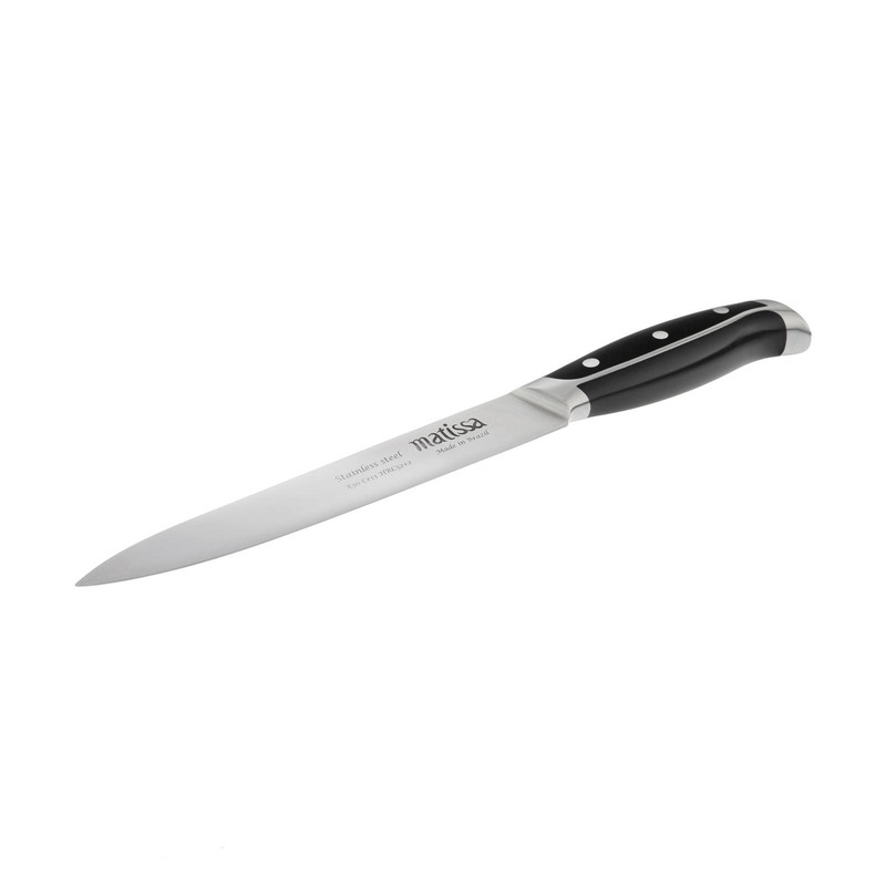 دیگر وقت آن رسیده است که با در نظر گرفتن نیازهای خود خرید کنیم و بیخود با خریدهای بدون استفاده جیب تاجران محترم را پر نکنیم دقیقا دو سایز چاقویی که در هر خانه ای مورد استفاده دائم قرار میگیرد را در یک بسته بندی تقدیم شما خواهیم کرد و چنانچه اعتماد کنید جمله (یک بار برای همیشه) بهترین جمله ای است که برای خرید چنین چاقویی میتونیم به کار ببریم. شما پس از خرید این دو سایز کارد برزیلی دیگر قصد خرید هیچ چاقویی را نخواهید کرد. متاسفانه در اینگونه رسم شده است که در هر آشپزخانه ای باید یک سرویس چاقو چندین پارچه ای وجود داشته باشد که در اکثر موارد بی کیفیت و تنها از دو سایز آن سرویس استفاده میشود و الباقی بیشتر به حالت دکور در آشپزخانه قرار میگیرد ما قصد داریم با پیشنهاد خرید این دو سایز چاقو نیاز شما را با کمترین هزینه و در عوض با بالاترین کیفیت برآورده کنیم.تیغه به کار رفته در چاقوی matissa از فولاد ضد زنگ و بسیار با کیفیت ساخته شده است که از استحکام و دوام بسیار بالایی برخوردار است. دسته این چاقوها نیز از جنس پلاستیک فشرده و مقاوم(ABS) تهیه شده که در قسمت انتهای تیغه چاقو بوسیله دستگاه تزریق پر شده است و جدا شدنی نیست لازم به ذکر است تیغه چاقو تا انتهای دستگیره یک تیکه بوده و امکان جدا شدن تیغه و دسته از یکدیگر به هیچ وجه وجود نخواهد داشت دسته این محصول با توجه به طراحی و ساختار نومیکی که دارد کمک می کنند تا دستان شما هنگام کار با آن ها خسته نشود.از نظر کارکرد این چاقوها همه کاره بوده و برای هر کاری در آشپزخانه می توانید از سایز مورد نظر خود کمک بگیریددر حال حاضر برای پخت غذا و یا آماده سازی مواد غذایی مانند برش دادن، ورقه کردن، خرد کردن و .. در هر آشپزخانه ای وجود این چاقوها ضروری و لازم است. لطفا پس از خرید و احساس رضایت، لذت این خرید و استفاده از آن را با دوستان خود به اشتراک بگذارید