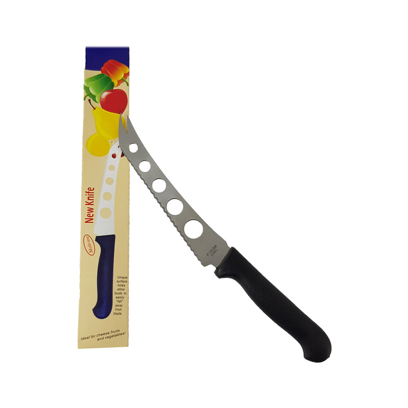 چاقو اره ای چند کاره مدل لیزری این چاقو یک چاقو همه کاره است که می توان از آن در بیشتر امور آشپزی و آماده سازی استفاده کرد.چاقو اره ای ک چاقوی دندانه دار بسیار تیزو بُرنده می باشد که برای اکثر کارهای آشپزخانه کار آمد است.تیغه های این چاقو ارّه ای است و بسیار برنده و تیز است و یکی از خصوصیات منحصر بفرد آن این است ک تیغه های ان قابلیت باز تیز شوندگی را دارند و باقرار دادن چاقو در فریزر تیغه آن مثل روز اول خواهد شد این خصوصیت چاقوی اره ای مدل لیزری را برای شما تا مدت ها قابل استفاده و کاربری میکند. طول این چاقو ۲۷سانتی متر می باشد دسته این محصول طراحی مناسبی داشته و راحت در دست جا می گیرد.