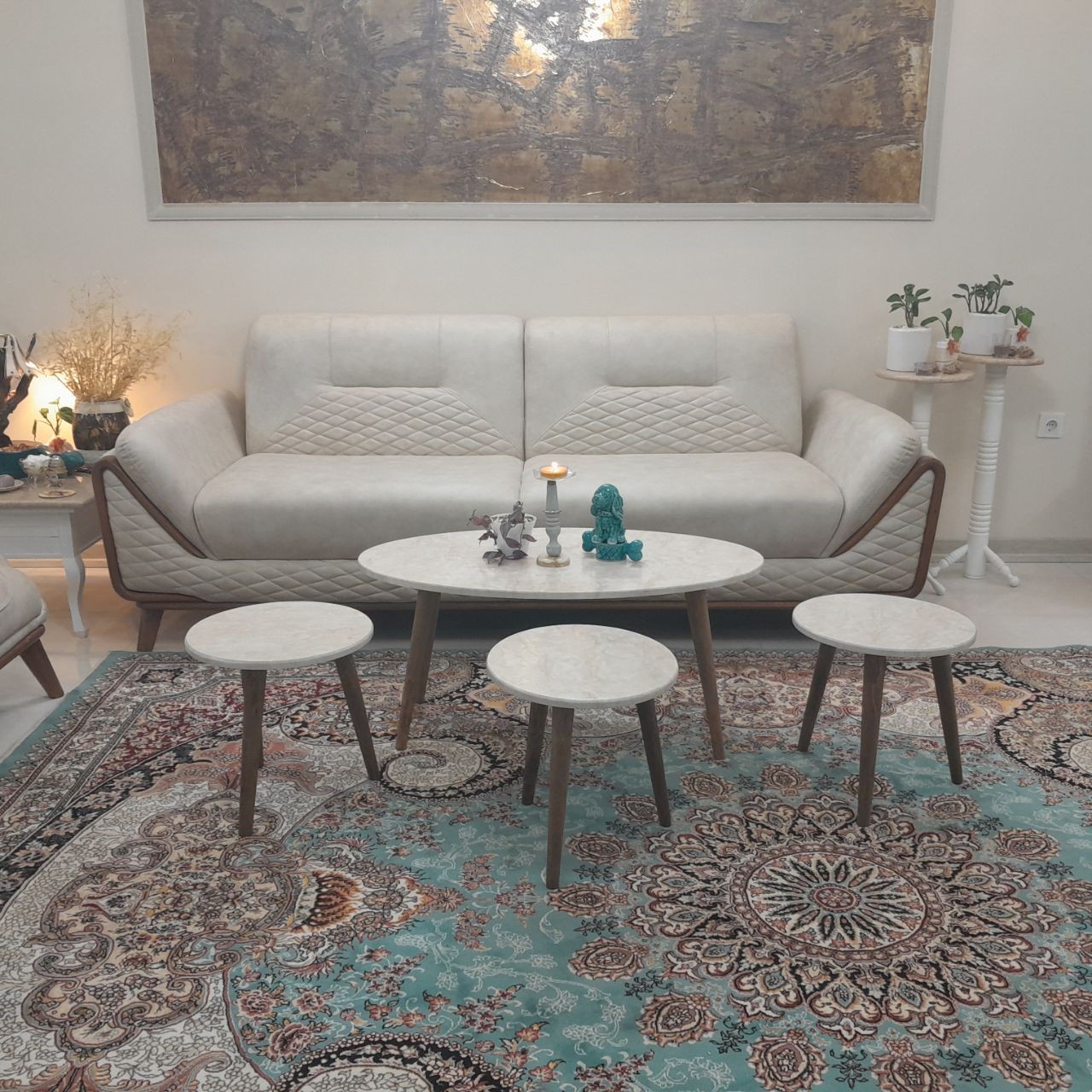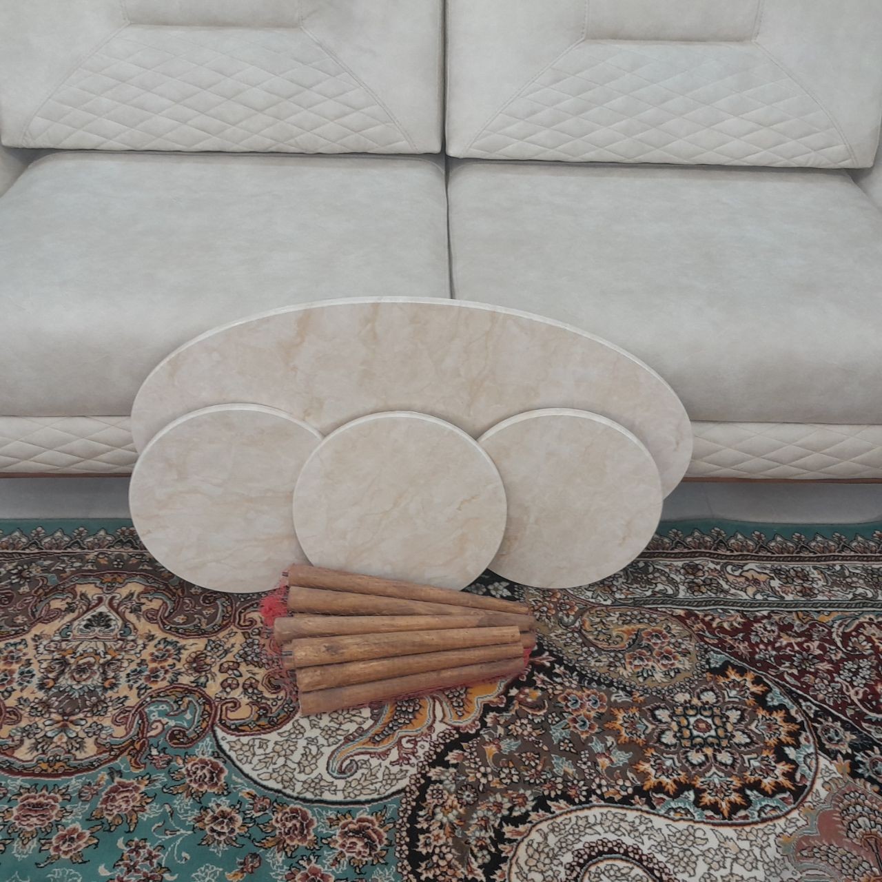 میز جلو مبلی بیضی کرم طرح سنگ 4تکه هزینه ارسال با مشتری کمترین قیمت میزجلومبلی میز عسلی میزعسلی مبلمونسرا مدل 222556