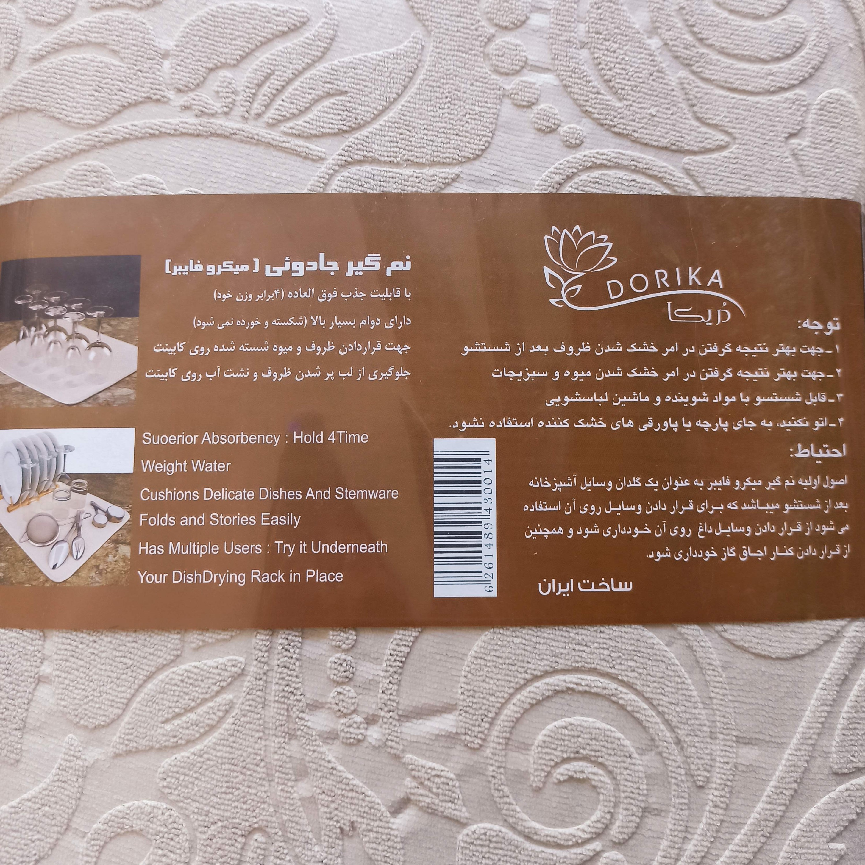 نمگیر ظرف میکروفایبر 👌با قابلیت جذب فوق العاده 👌قابل شستشو با ماشین لباسشویی بدون بر جای ماندن آثار لک 👌دارای دوام بسیار بالا،شکسته و خورده نمیشود جهت قراردادن ظروف و میوه شسته شده روی کابینت و غیره😍😍😍😍هر بسته شامل یک عدد رطوبت گیر ظروف کنار سینک, دارای طرح گل برجسته, تولید شده از مواد میکروفایبر جدید, قابلیت تاشدن آسان پس از استفاده, جذب آب سریع تا 4 برابر وزن خودش, قابلیت شستشوی آسان با دست یا ماشین لباسشویی